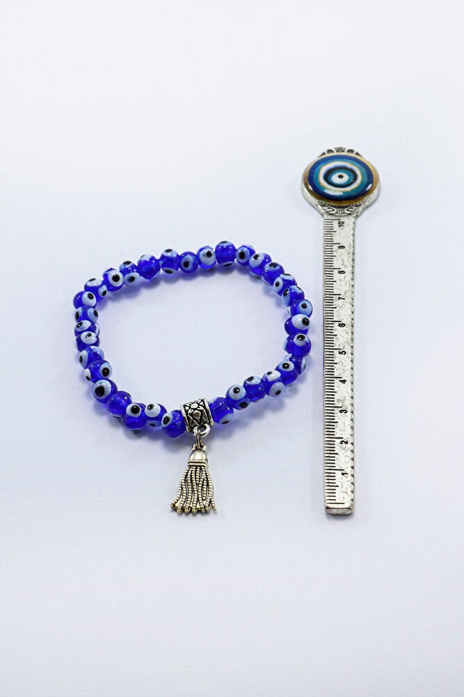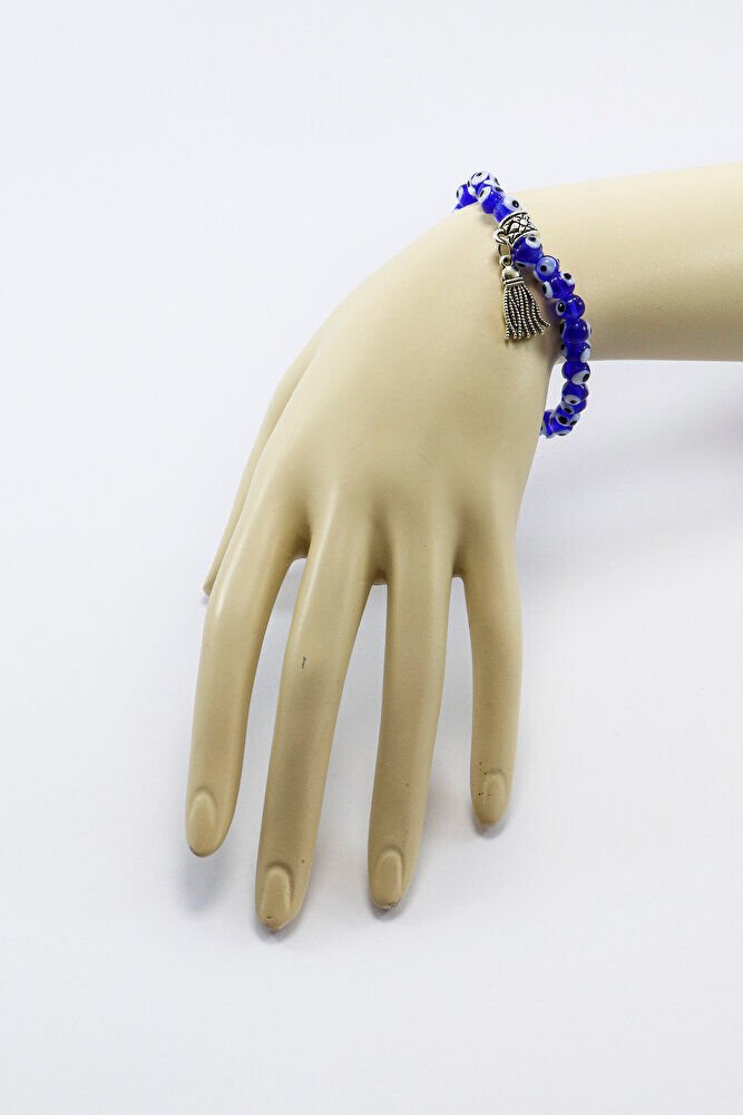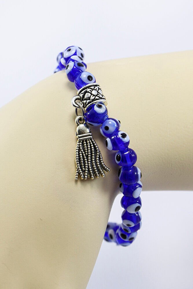 Nazar boncukları el yapımı camdır. El yapımı olduğu için ufak farklılık ve düzensizlikler olasıdır.; Bileklik lastiklidir. Sağlam olması için çift kat lifli elastik misina kullanılmıştır.;