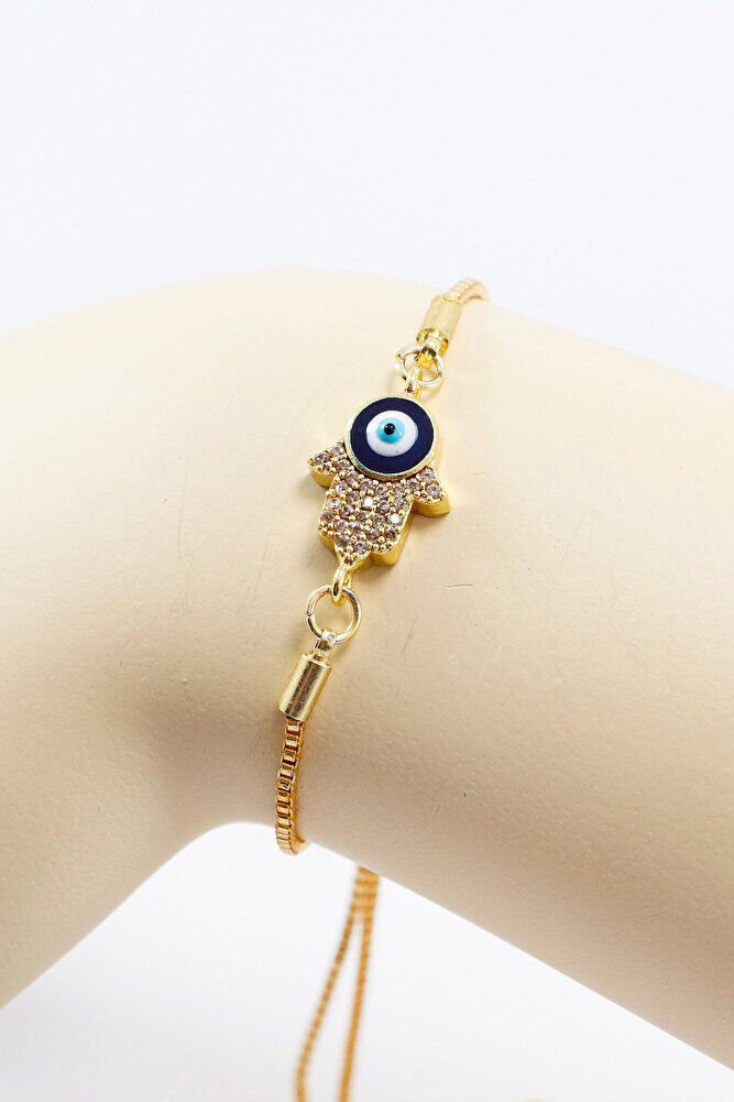 Adjustable Evil Eye Shiny Stone Hamsa Hand Bracelet, Gift Fatima Bracelet