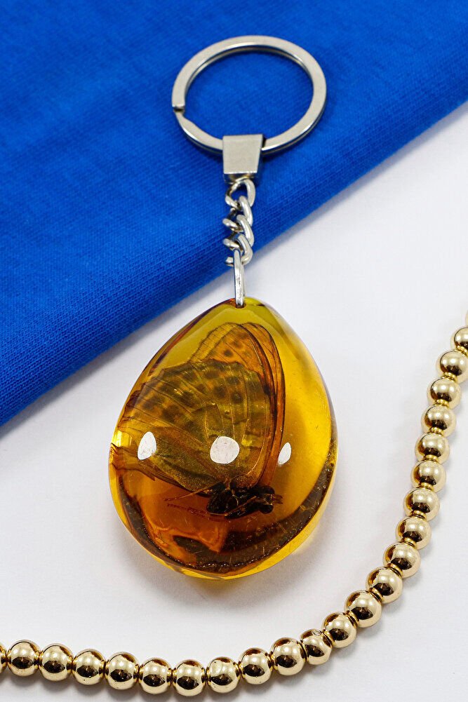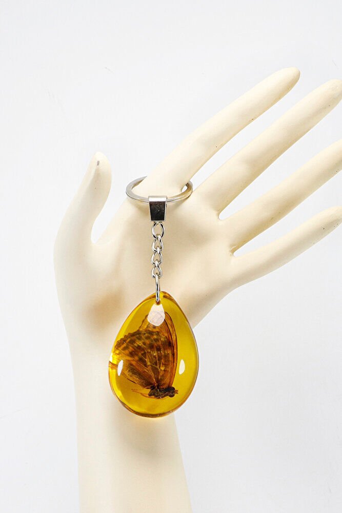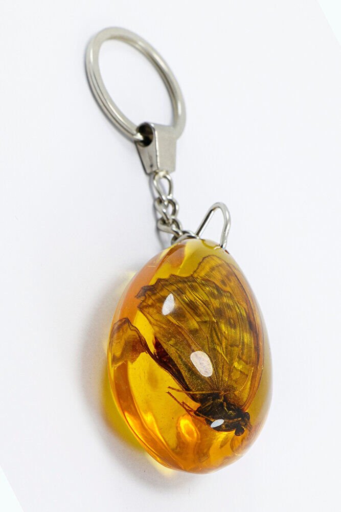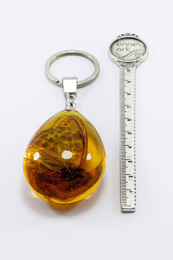 Amber Drop Real Butterfly Fossil Keychain, Butterfly Gift Keychain
