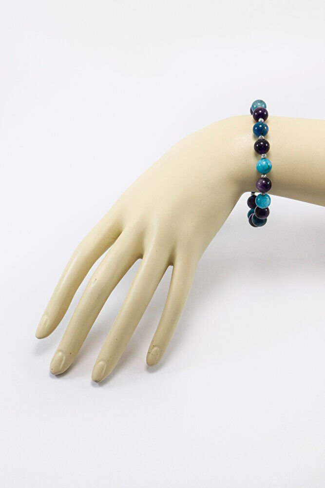 Apatit ve Ametist Doğal Taşlı Lastikli Bilekli 8mmk, Hediyelik Doğal Güzellikler