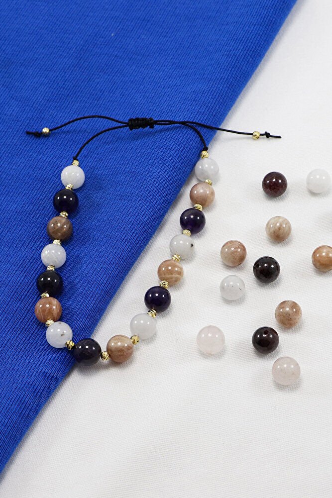 Asansörlü Ayarlanabilir Doğal Taşlı Bileklik Taşlar; Güneş Taşı, Lal Taşı, Ay Taşı