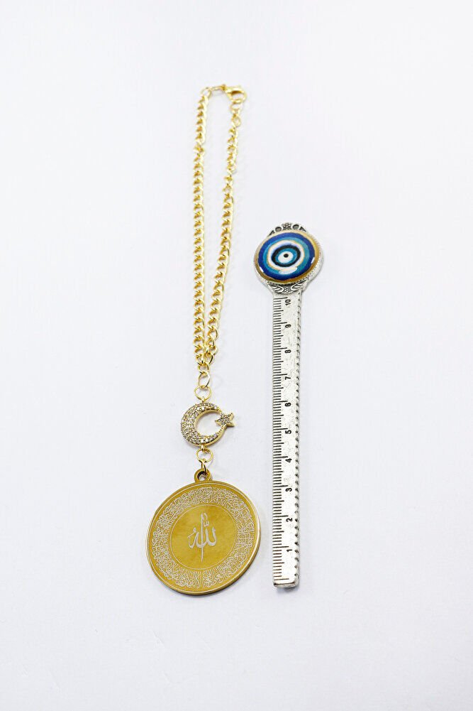 Ay Yıldız Zirkon Çelik Ön Allah Ayetel Kürsi Arka Nazar Ayeti Araba Dikiz Ayna Süsü Gold
