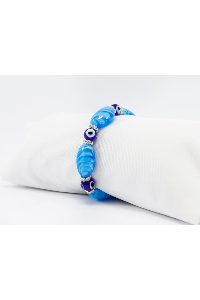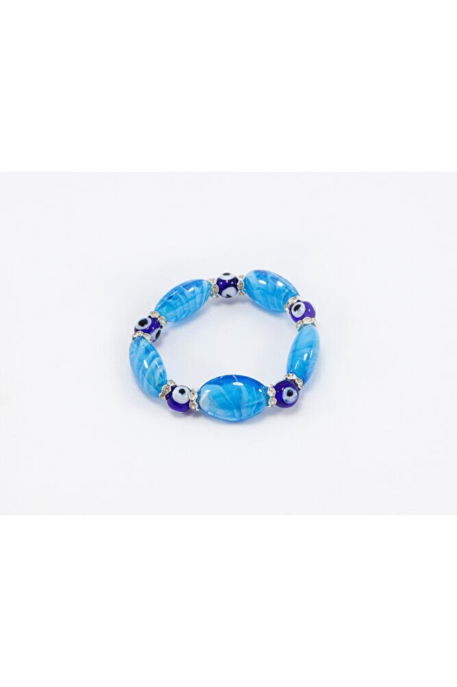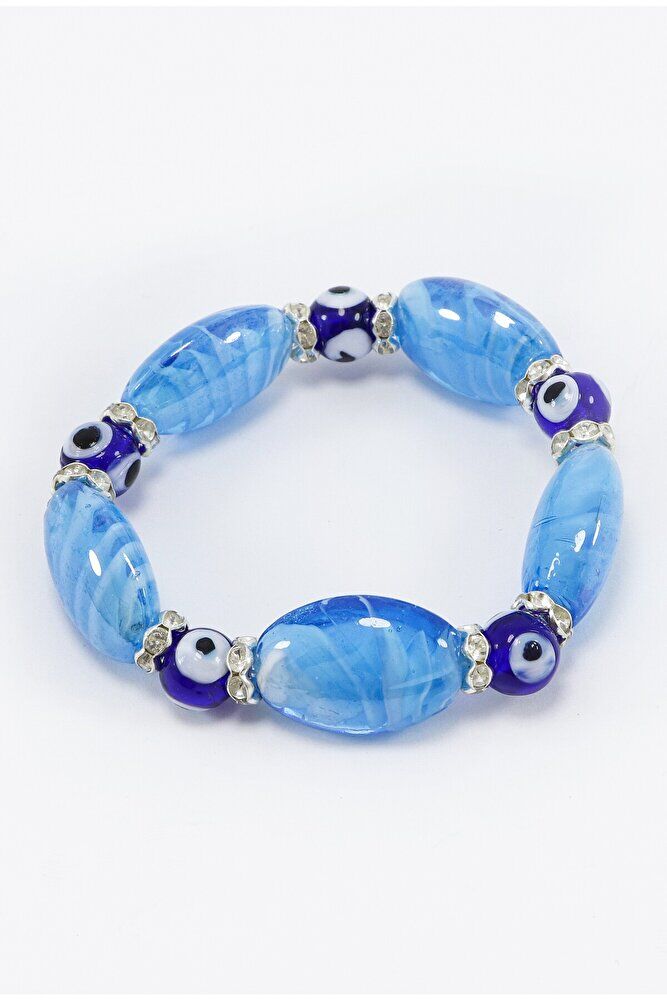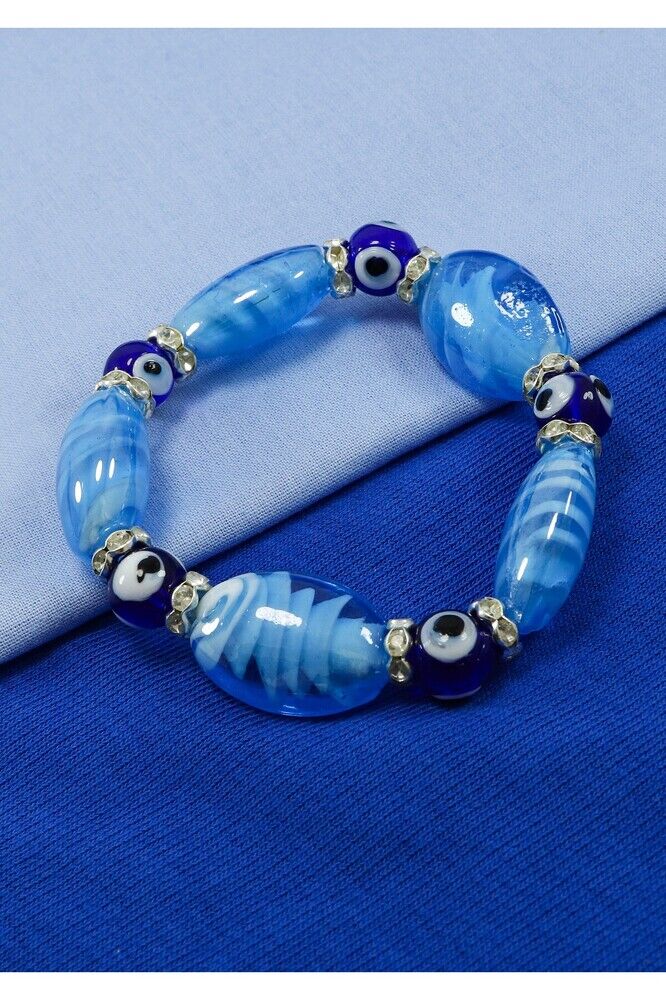 Evil eye beads are handmade glass.; The bracelet is elastic.;