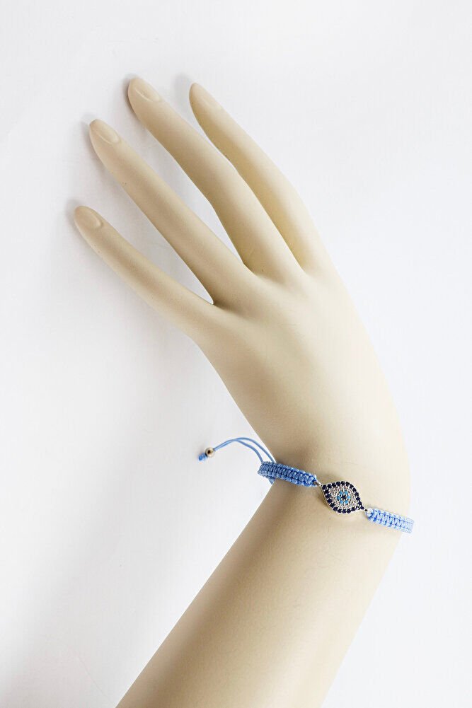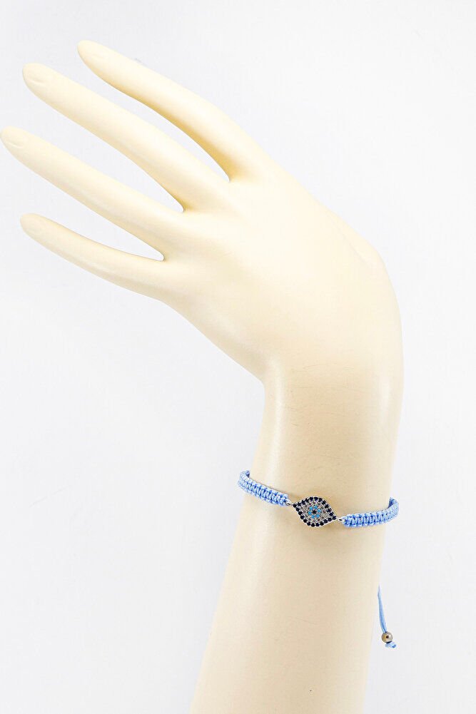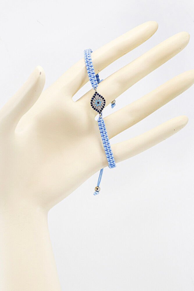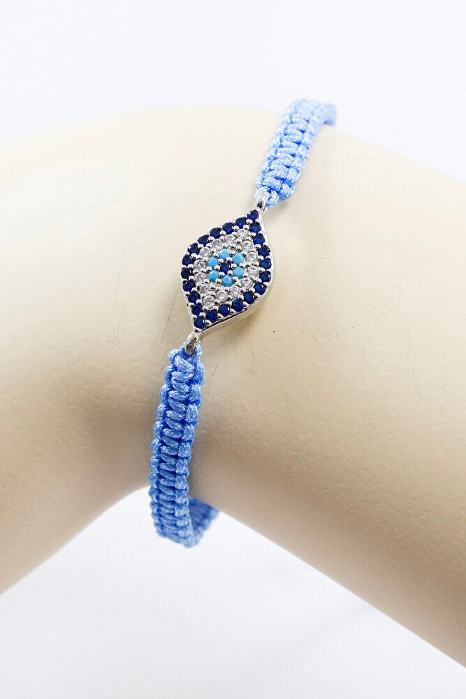 Baby Blue Silver Ellipse Zircon Stone Evil Eye Bracelet with Elevator, Gift Bracelet