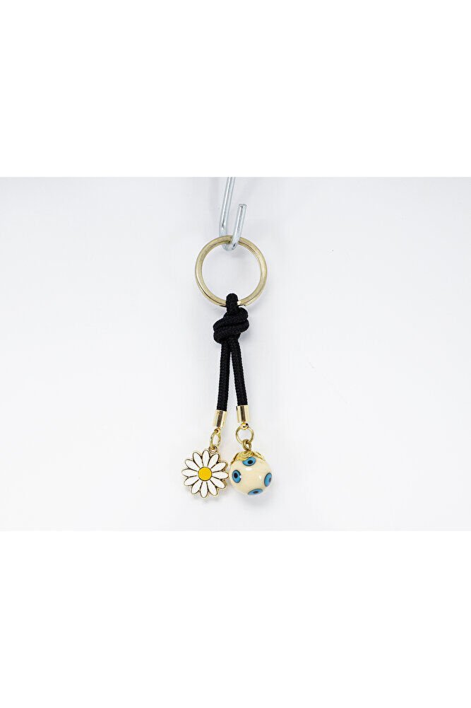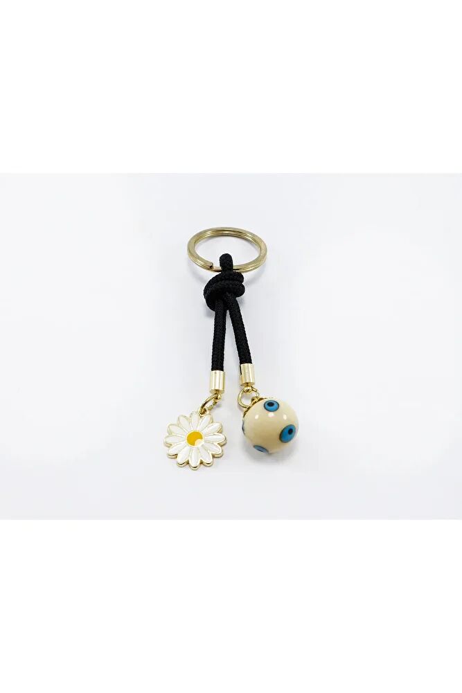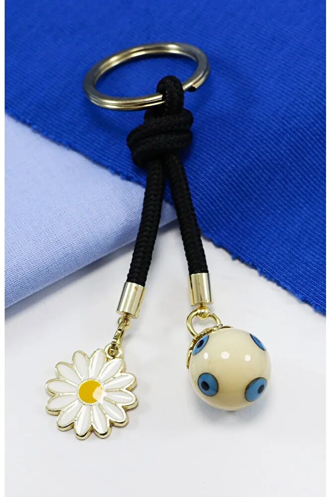THE PRODUCT IS SHIPPED AS A SINGLE KEYRING.; OTHER COLORS ARE AVAILABLE ON THE PANEL.; Evil eye beads are handmade glass.; Daisy is single-sided and made of metal.;