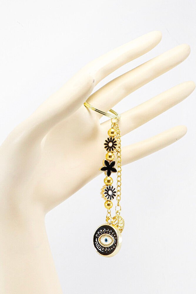 Black Lotus Flower Evil Eye Cluster Keychain, Gift Bag Ornament