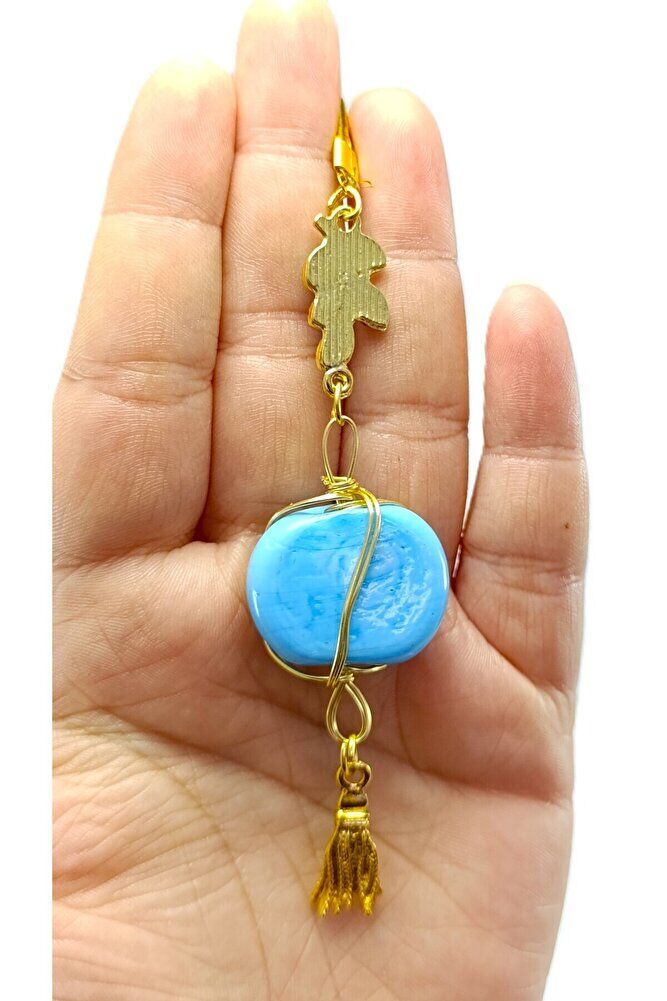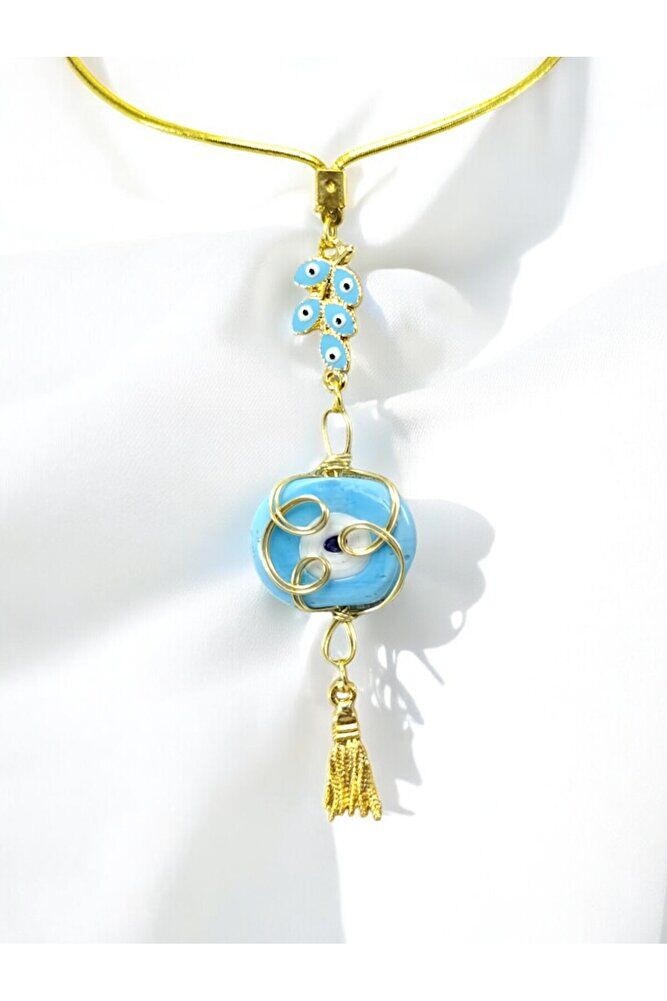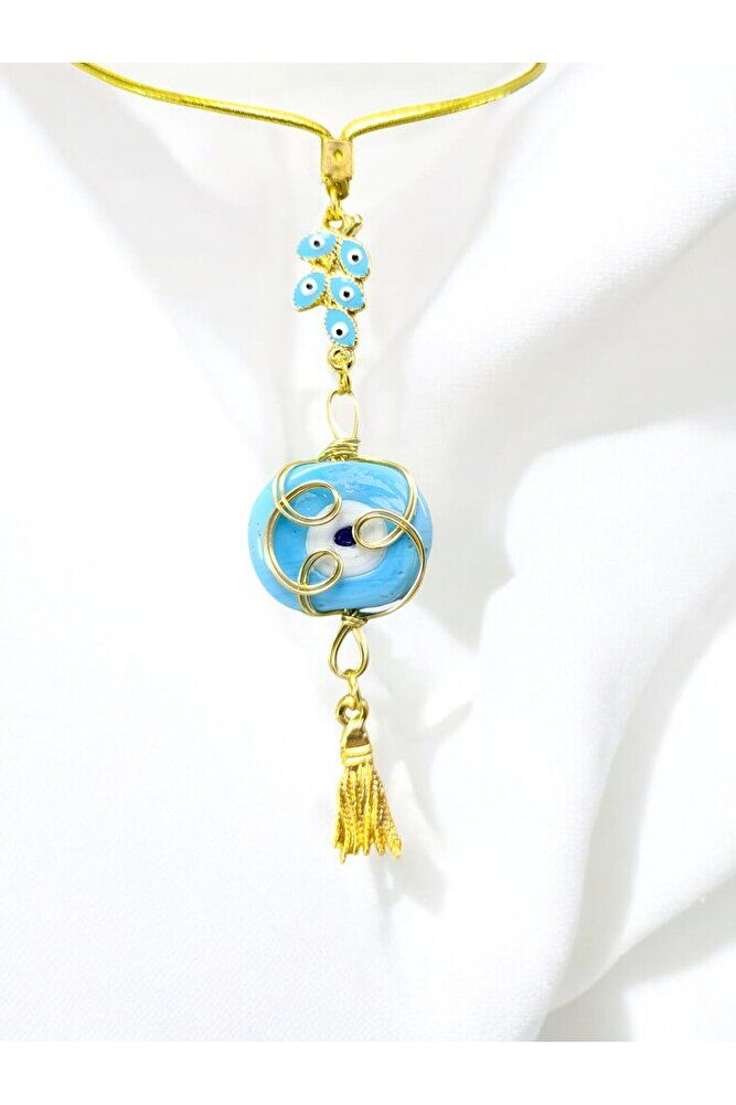 Mavi Salkım Nazar Detaylı Sarma Dana Gözlü Araba Dikiz Ayna Süsü/ Püsküllü Araba Hediyesi