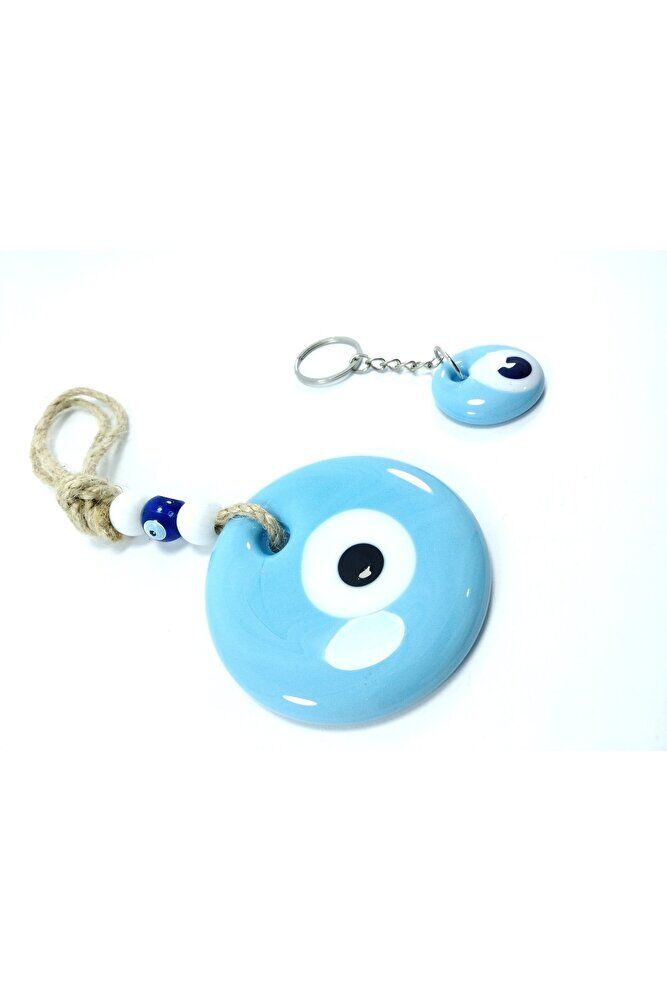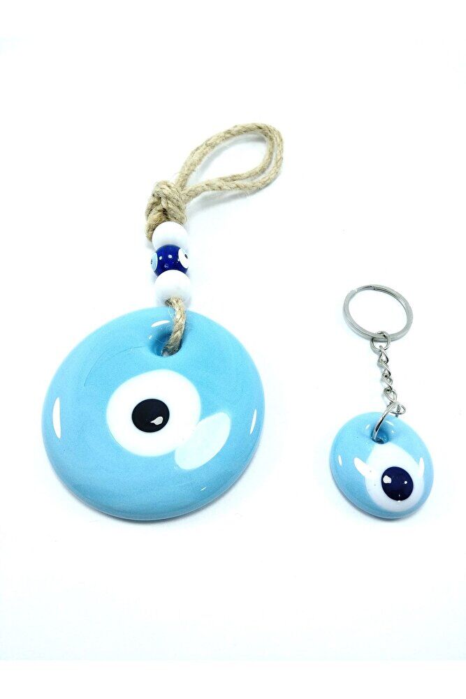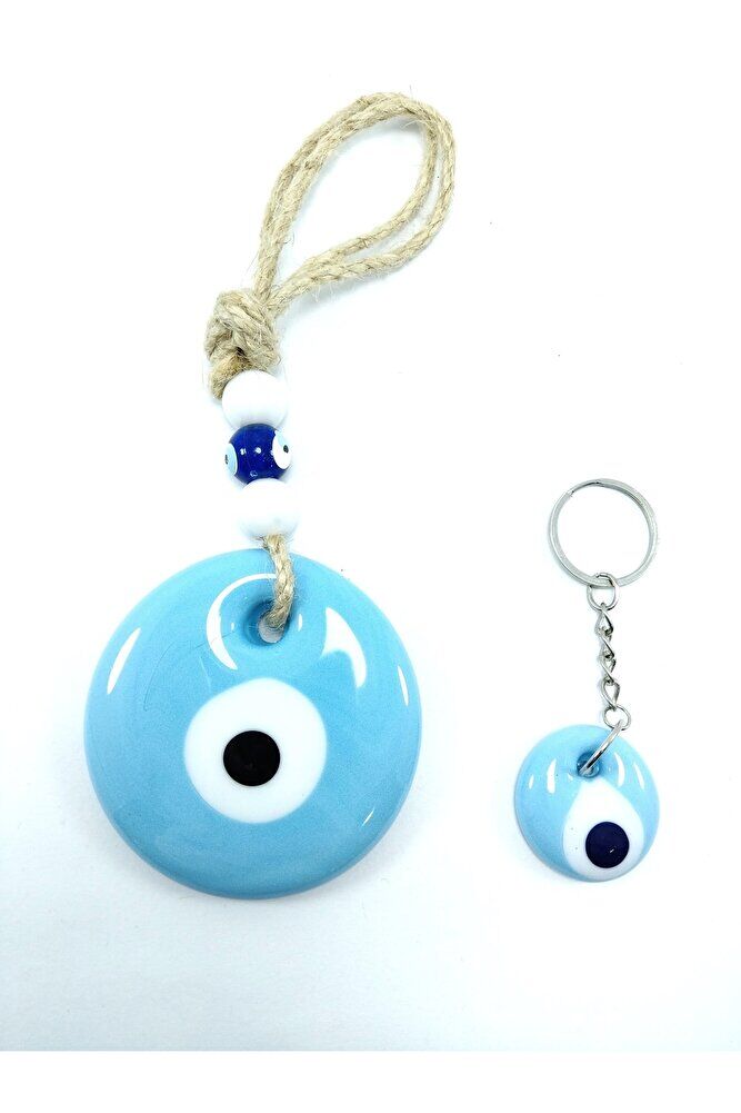 The products are handmade. ; The wall ornament evil eye bead is 7 cm in size. ; The glass bead on the keychain is 3-3.5 cm in size. It can also be used as a rearview mirror ornament using jute rope. Since they are handmade, slight differences and irregularities are possible. ; Protect yourself and your loved ones from negative energy with these handmade glass evil eye beads. ; This powerful symbol, traditionally known as the "evil eye bead" in Turkish culture, is believed to ward off evil and bring good luck. ; Each glass bead is meticulously crafted by skilled artisans, making each piece unique. ; We offer the evil eye bead to our customers in different formats such as wall ornaments, keychains, car accessories, door ornaments, and magnets. ; Hang it in your home, car, or office to bring positive energy and protect against the evil eye. ; The evil eye talisman has different names in various cultures around the world. ; Known in Arabic as "aynal-hasud" or "eye of envy" and in Greek as "mati", belief in the power of this protective evil eye bead is universal.