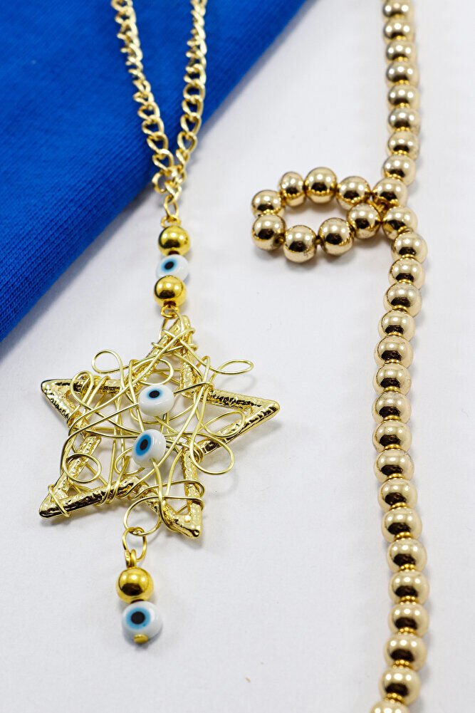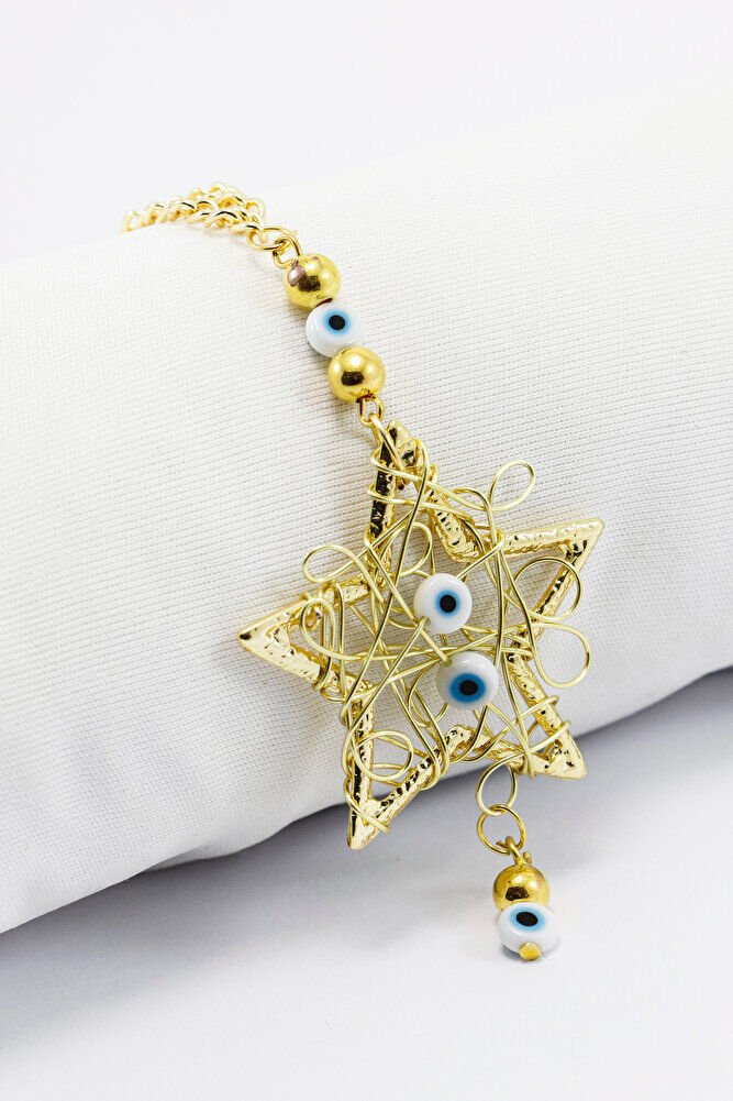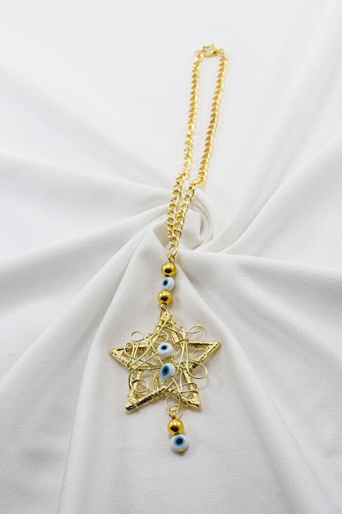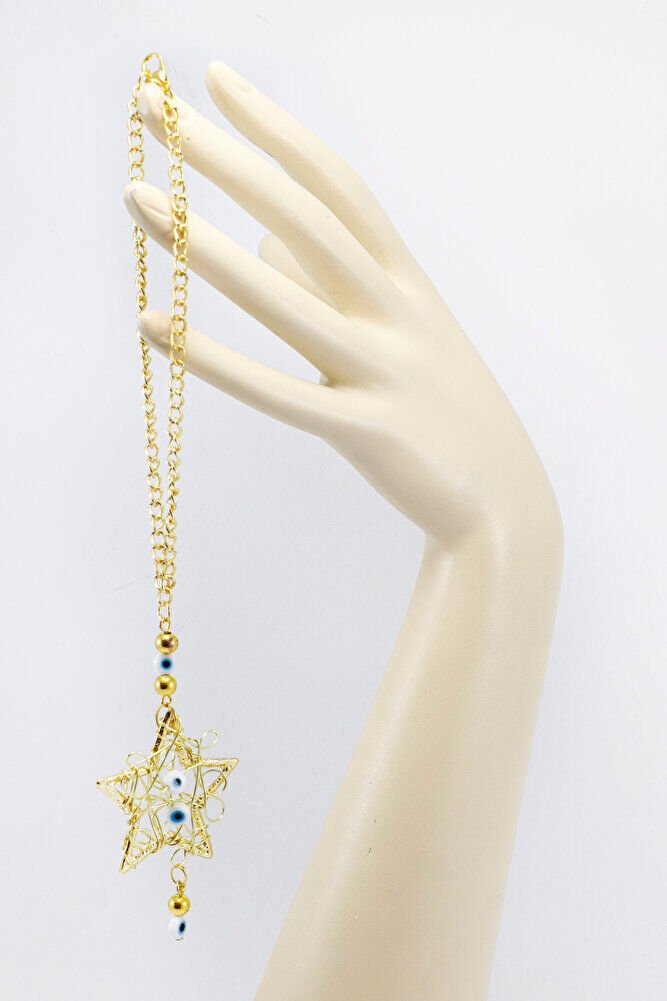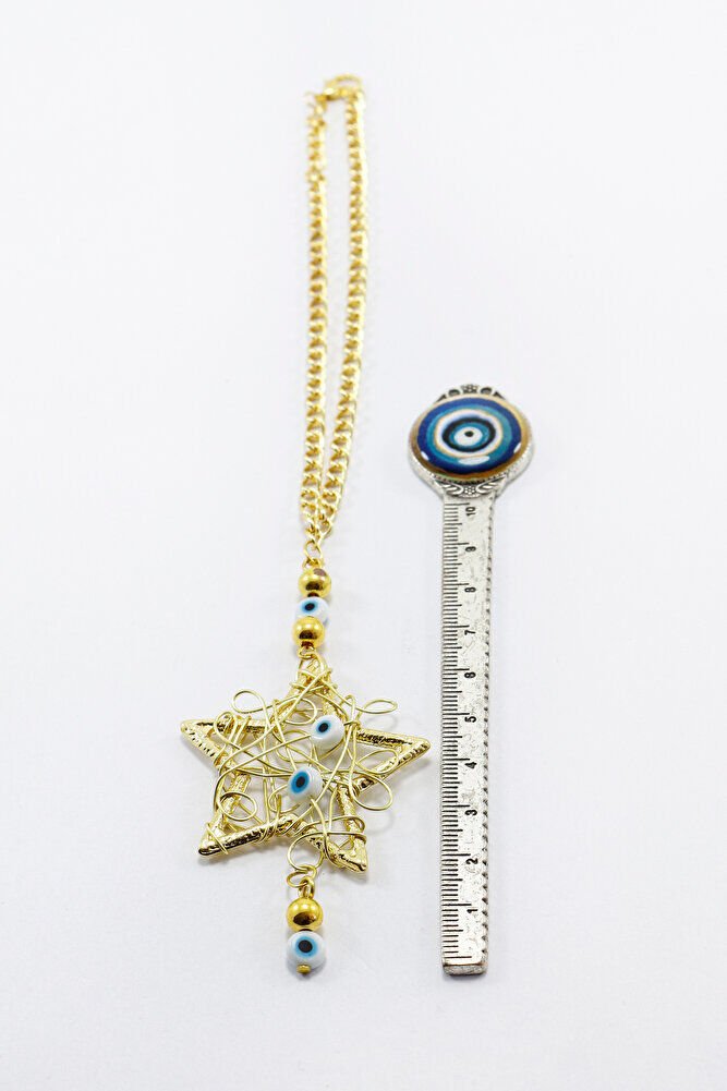 Cam Nazar Boncuklu Metal Yıldız Dikiz Ayna Süsü Yılbaşı Ağacı Süsü