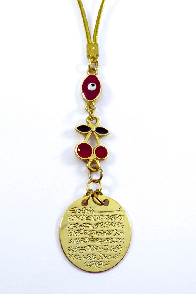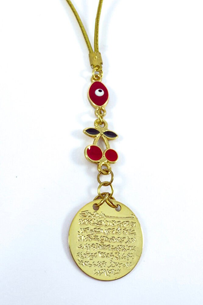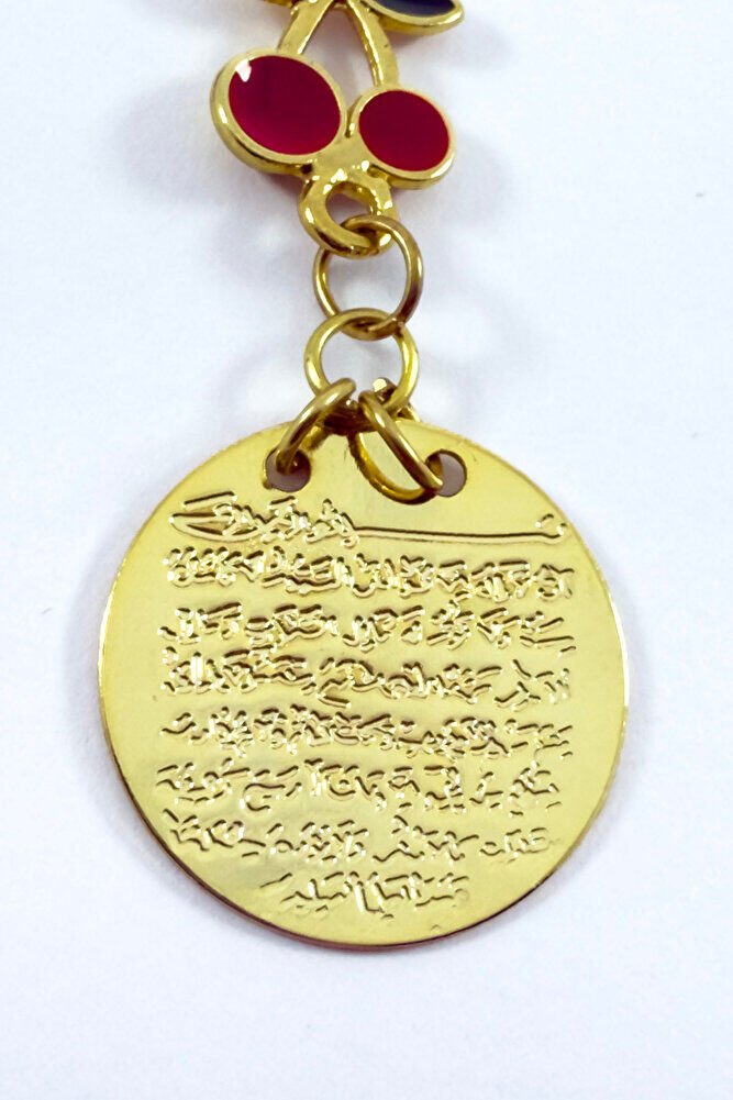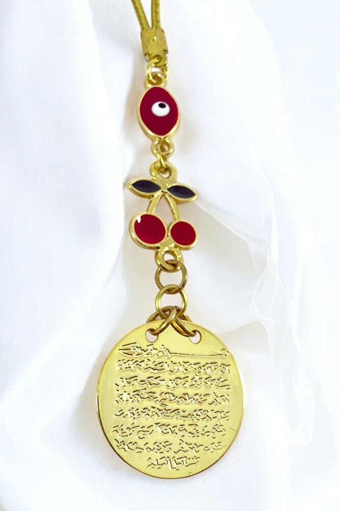 The product is handmade.; Since it is handmade, slight differences and irregularities are possible.; The rope is elastic, and thanks to its elastic structure, it can be easily attached to any model of vehicle.; The product is gold colored metal.; The product is single-sided.; Ayetel Kürsi is also single-sided and measures 2 cm.; Ayetel Kürsi is verse 255 of Surah Al-Baqarah and has a very important place in the Islamic belief.; This verse emphasizes the power, sovereignty and that Allah is the Supreme Being who knows everything and owns everything.; The verse states that Allah is above everything and that no power can act without His permission.; Another important issue that is considered believeable is that it is believed that this verse will protect a person from evil and give peace and security.; Muslims frequently recite Ayetel Kürsi and use it for protection, prayer and seeking peace in various situations.; Therefore, it has both spiritual and protective meaning.;