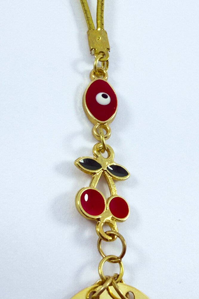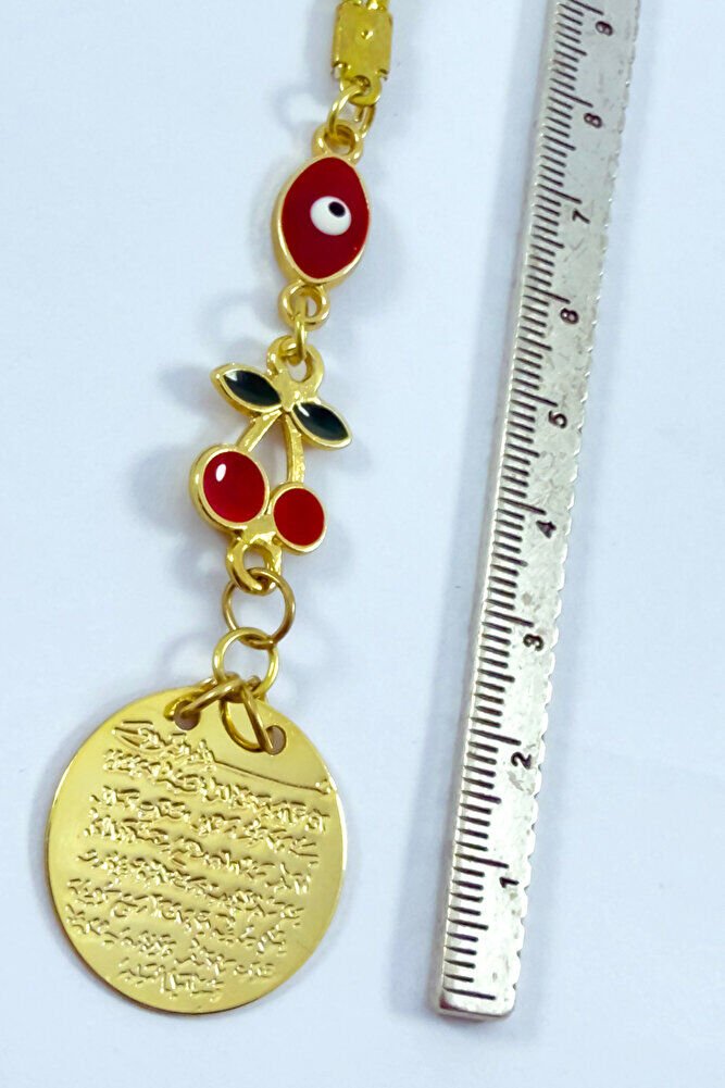 Cherry Frame Red Evil Eye Metal Ayetel Kursi Car Rearview Mirror Ornament, New Car Gift