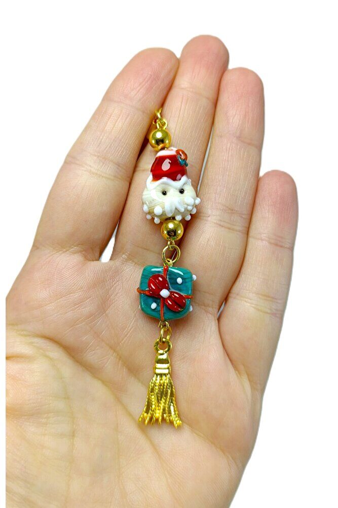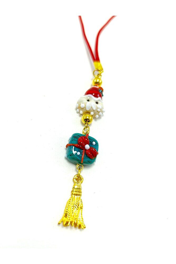Yılbaşı Araba Dikiz Ayna Süsü, El Yapımı Cam Boncuklu Lüks Hediyelik, Yeni yıl Hediyesi