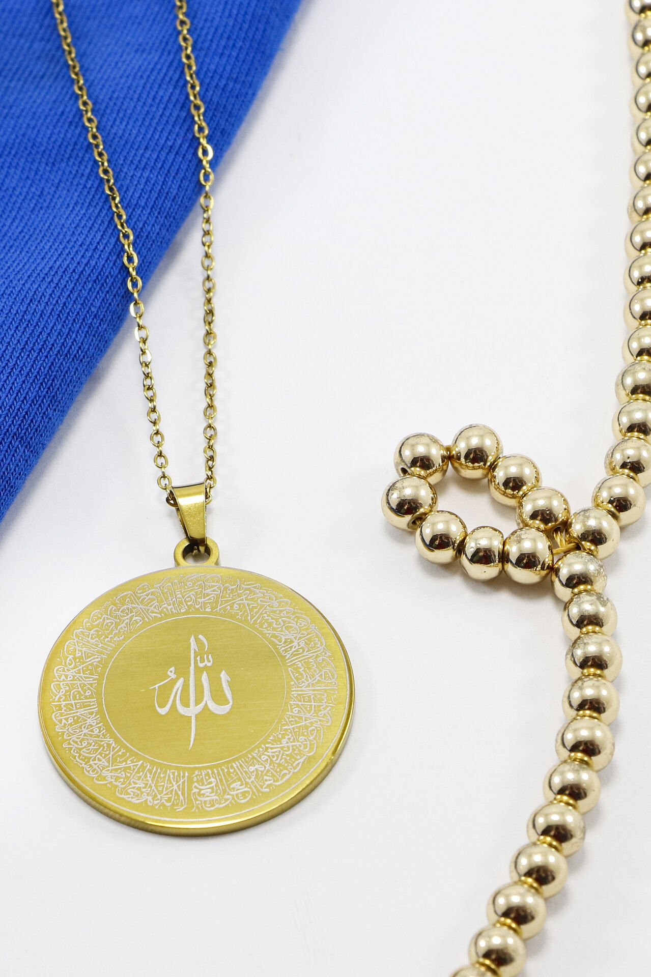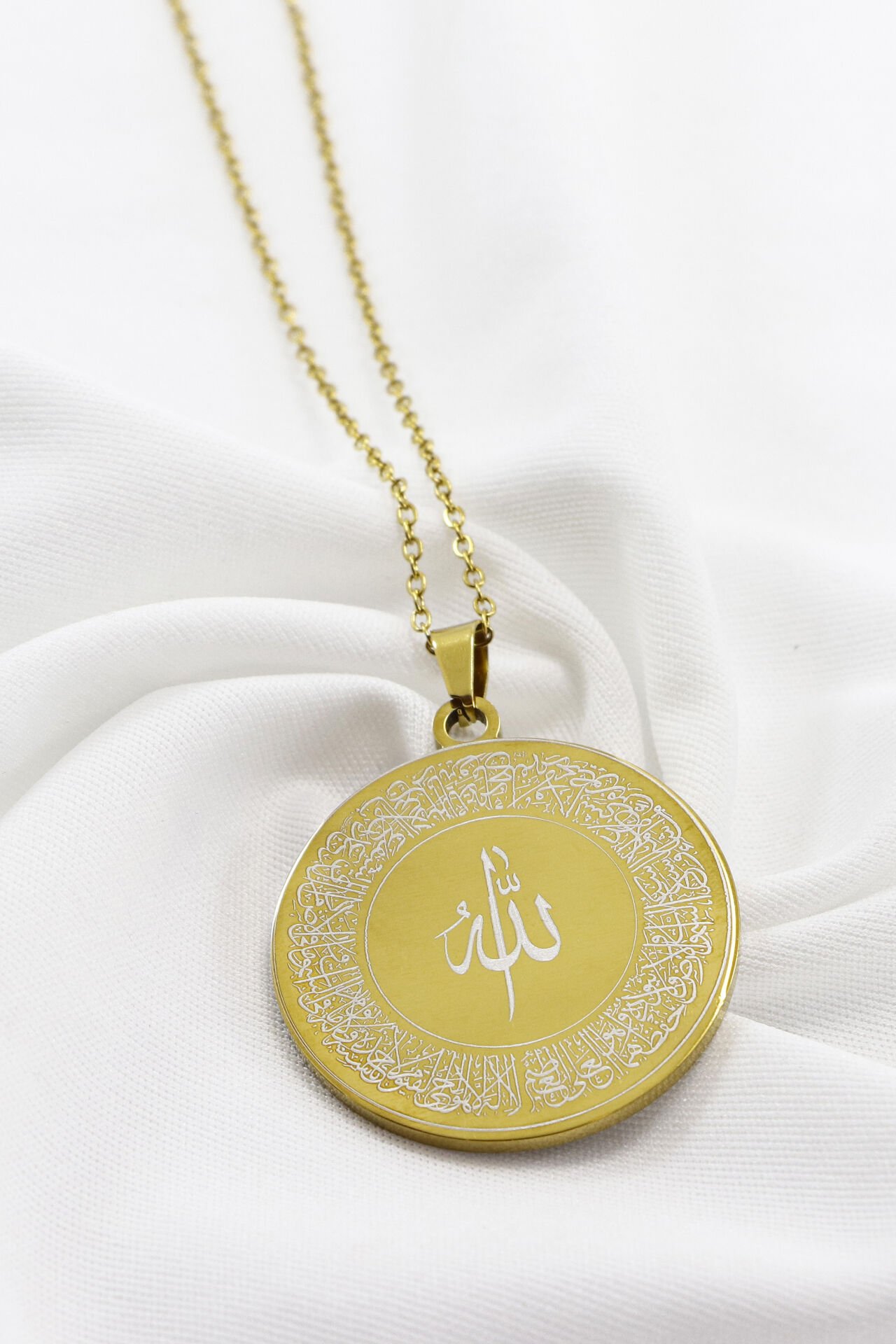 Çift Taraflı Çelik Kolye, Ön Yüzünde Allah Lafzı Hat Ayetel Kürsi Arka Yüzünde Nazar Ayeti Kolye