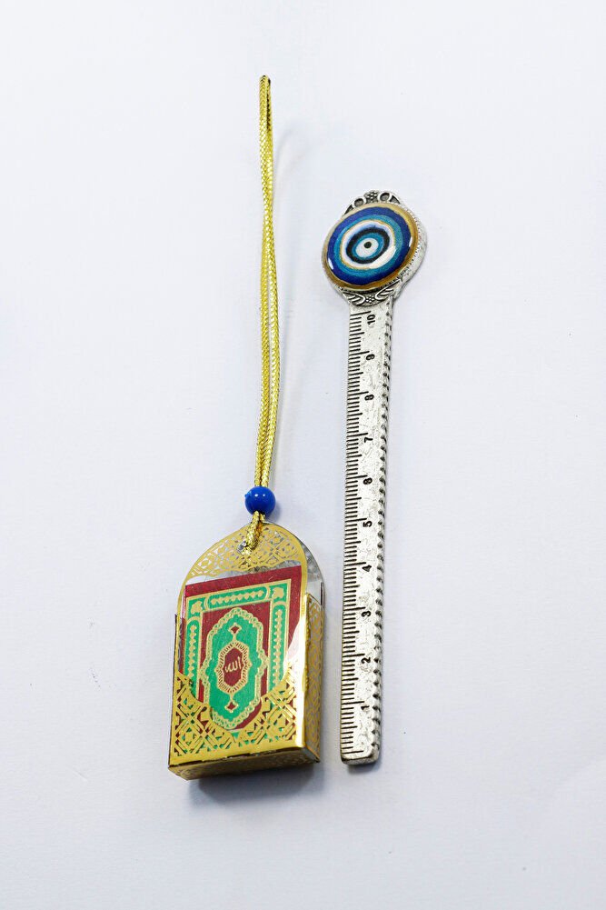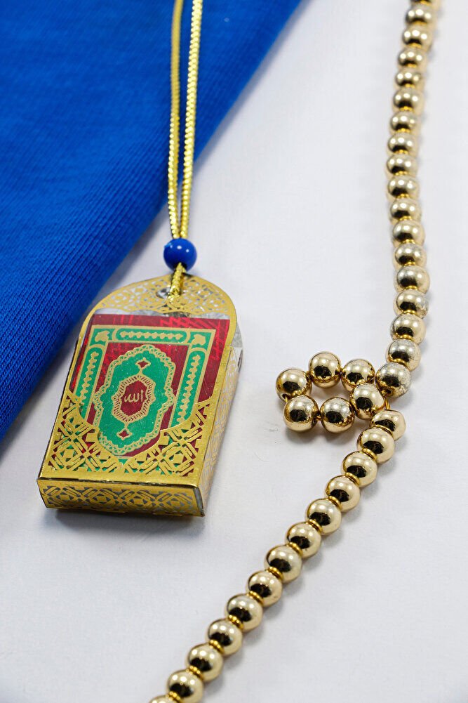 Ürünün içerisinde mini Kur'an-ı Kerim bulunmaktadır.; İp elastik değildir.; ; Kabı plastiktir.; ;Ürün çok küçüktür.; Lutfen cetvel ile çekilmiş görseli dikkate alınız.;