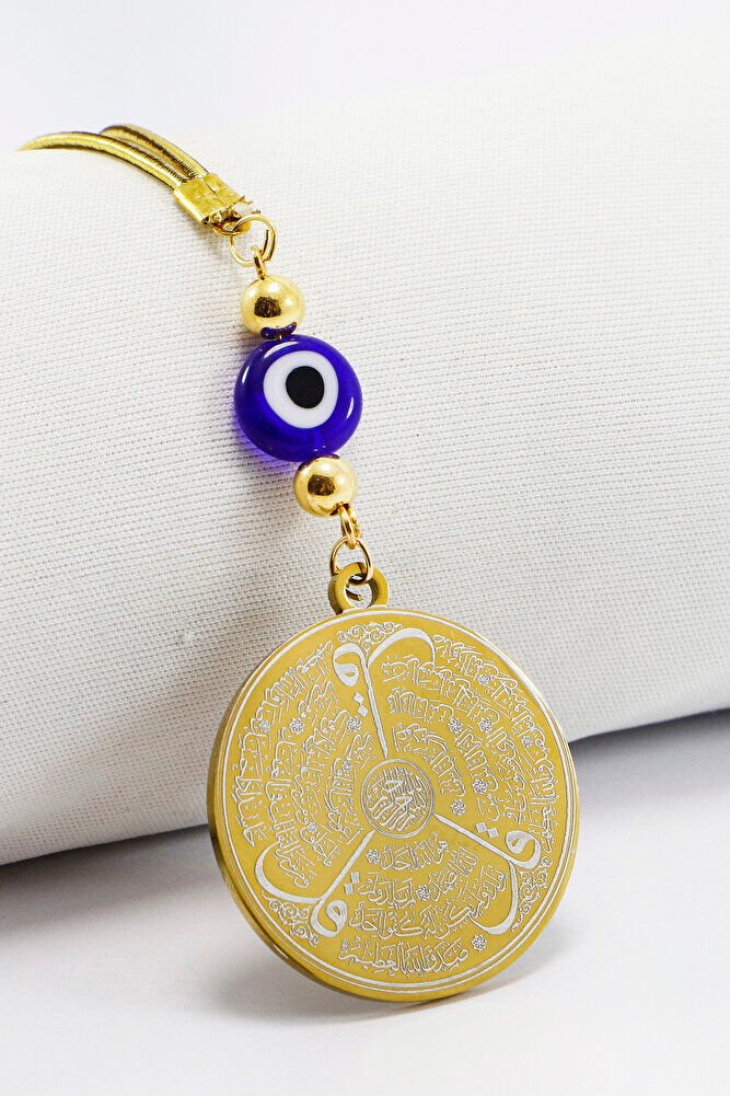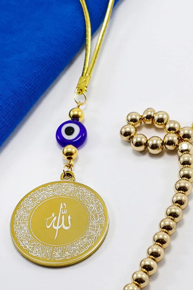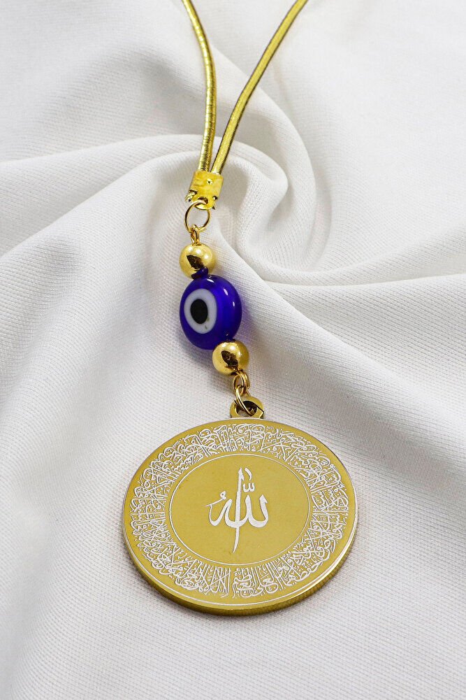 Dark Blue Flat Evil Eye Beaded Ayetel Kursi Allah Word Falak Nas Ihlas Steel Car Mirror Ornament