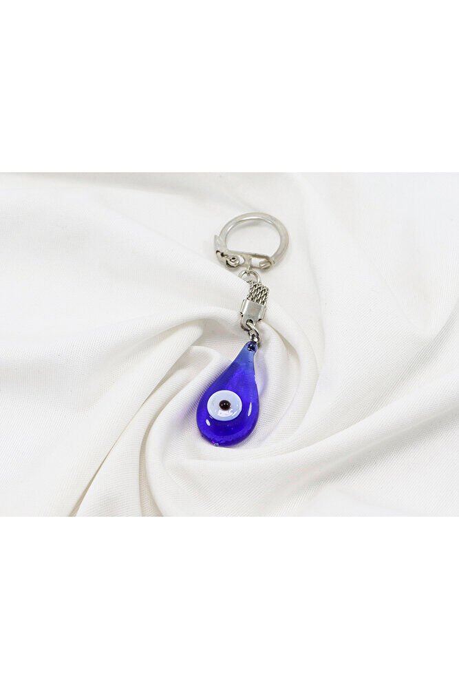 Drop-shaped glass evil eye bead is single-sided.; It can be used both as a keychain and bag ornament.;