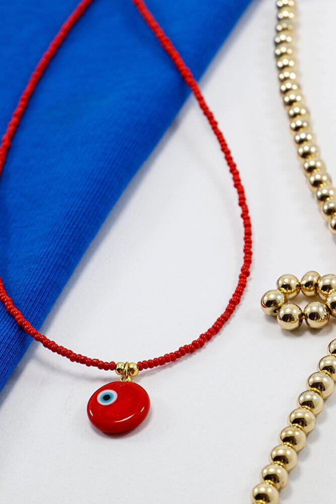 Ürün el yapımıdır.; El yapımı kırmızı yuvarlak asimetrik nazar boncuğu ile tasarlanan bu bijuteri kolye, kırmızı kum boncukların enerjik uyumuyla tamamlanmıştır.; Asimetrik nazar boncuğu tasarıma özgün bir karakter kazandırırken, kırmızı boncuklar kolyeye neşeli ve canlı bir görünüm sunar.; Günlük kombinlere kolayca eşlik edebilen hafif ve rahat bir aksesuardır.; Kendiniz için ya da anlamlı ve farklı bir hediye alternatifi olarak tercih edilebilir.; TÜM ÜRÜN FOTOĞRAFLARI ENNEA ART FİRMASINA AİTTİR VE ÖZGÜN ÇALIŞMALARDIR.; İZİNSİZ KULLANIM, KOPYALAMA VEYA DAĞITIM KESİNLİKLE YASAKTIR.; GEREKLİ DURUMLARDA YASAL İŞLEM BAŞLATILACAKTIR.;