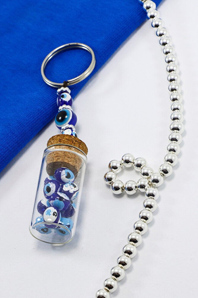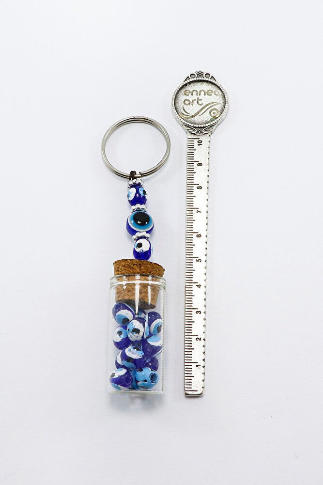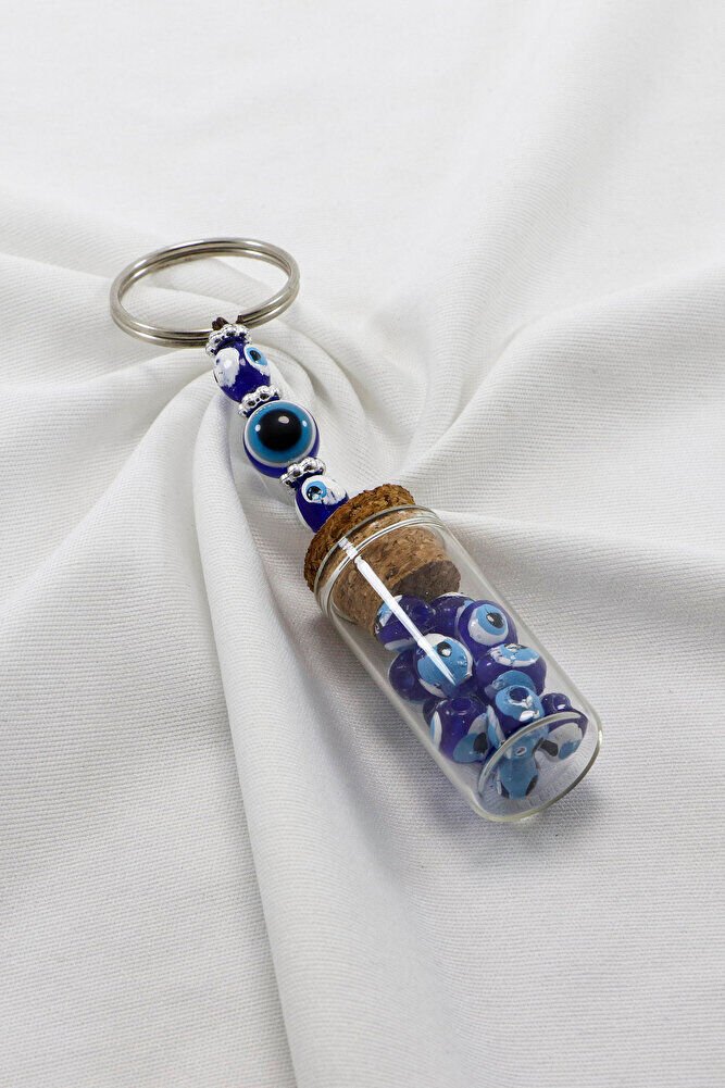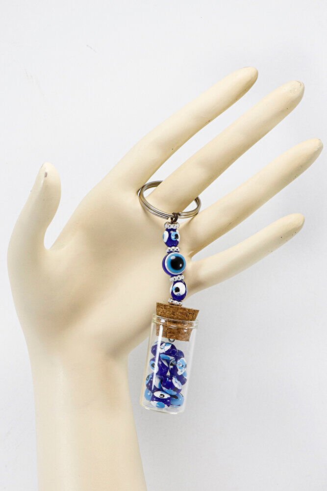 El Yapımı Cam Şişe İçerisinde Nazar Boncuklu Anahtarlık, Hediyelik Anahtarlık