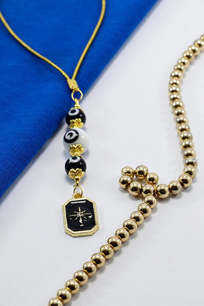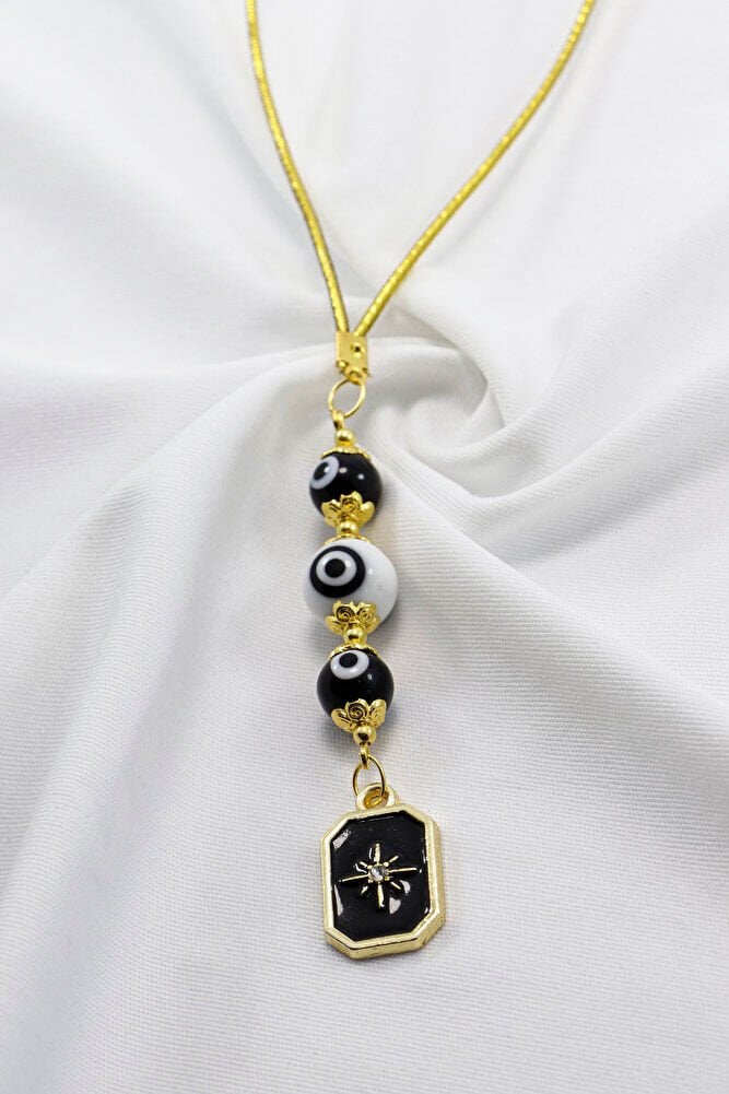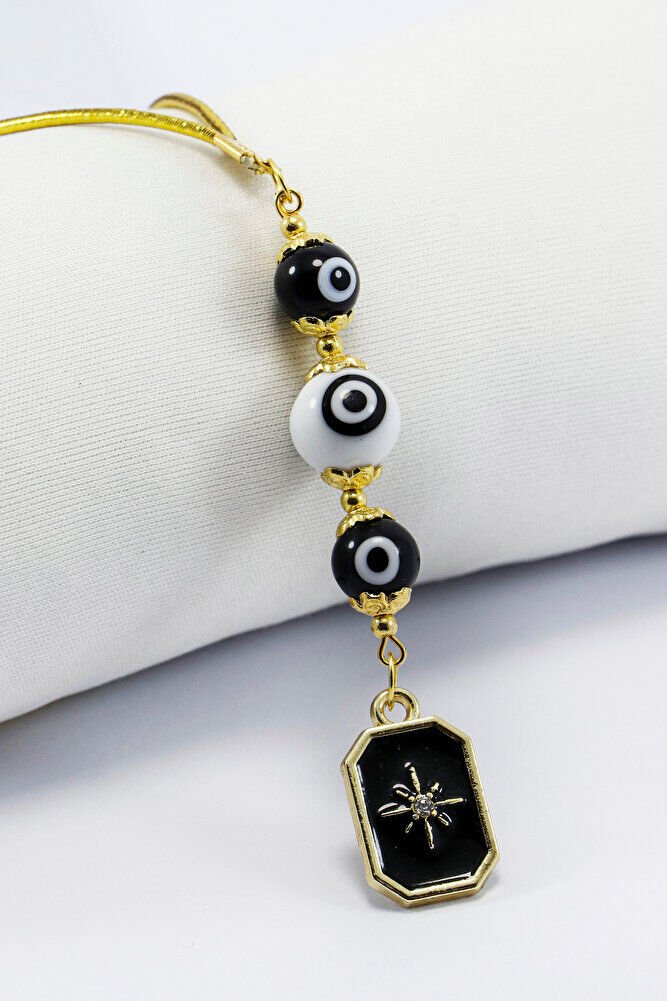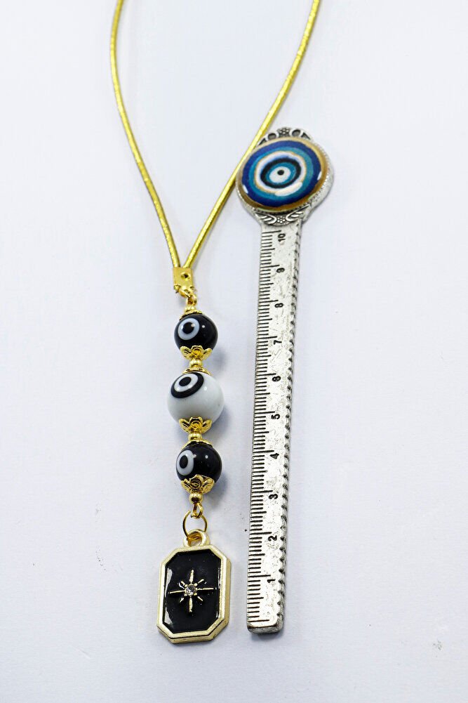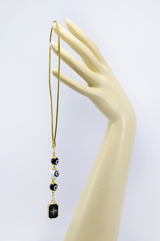 El Yapımı Cam siyah Beyaz Nazar Boncuklu Metal Kuzey Yıldızı Araba Dikiz Ayna Süsü