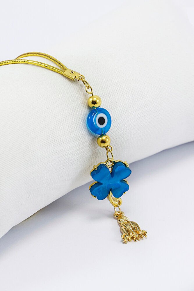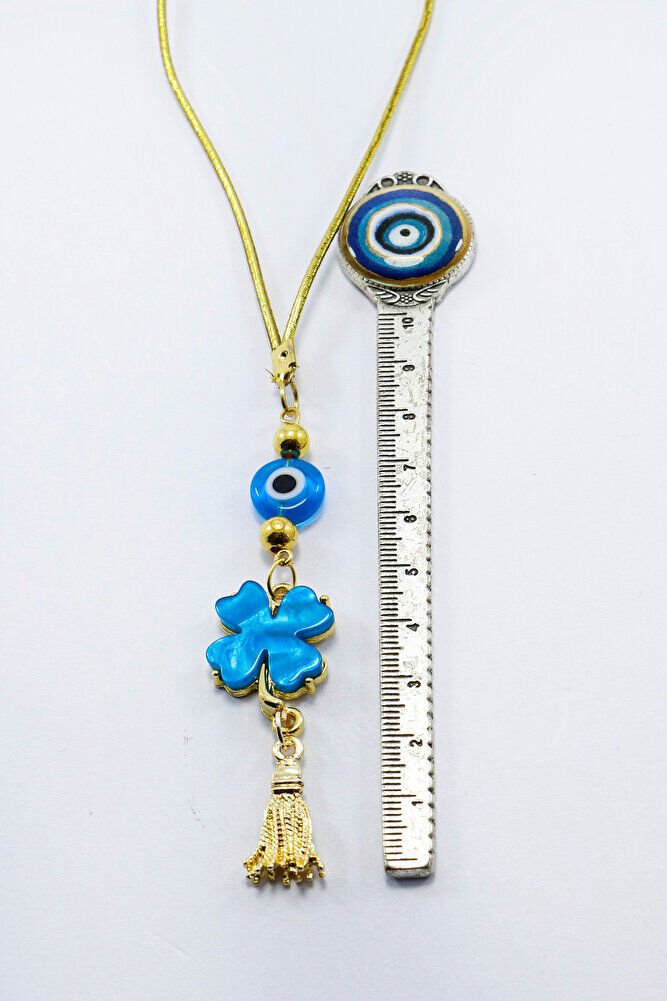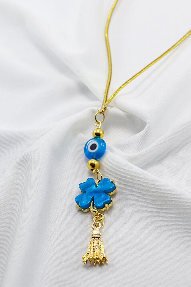 El Yapımı Cam Turkuaz Boncuklu Turkuaz Yonca Araba Dikiz Ayna Süsü, Yeni Araba Hediyesi EN06594