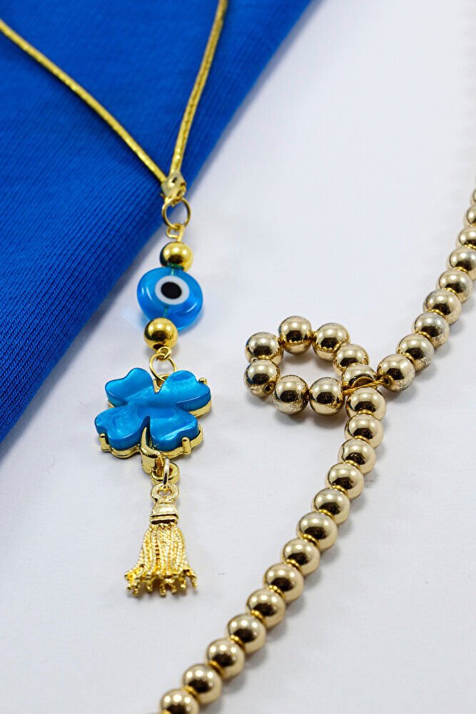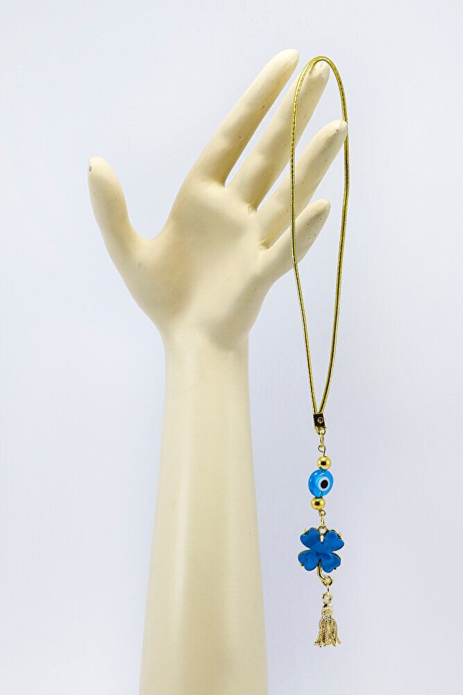 El Yapımı Cam Turkuaz Boncuklu Turkuaz Yonca Araba Dikiz Ayna Süsü, Yeni Araba Hediyesi