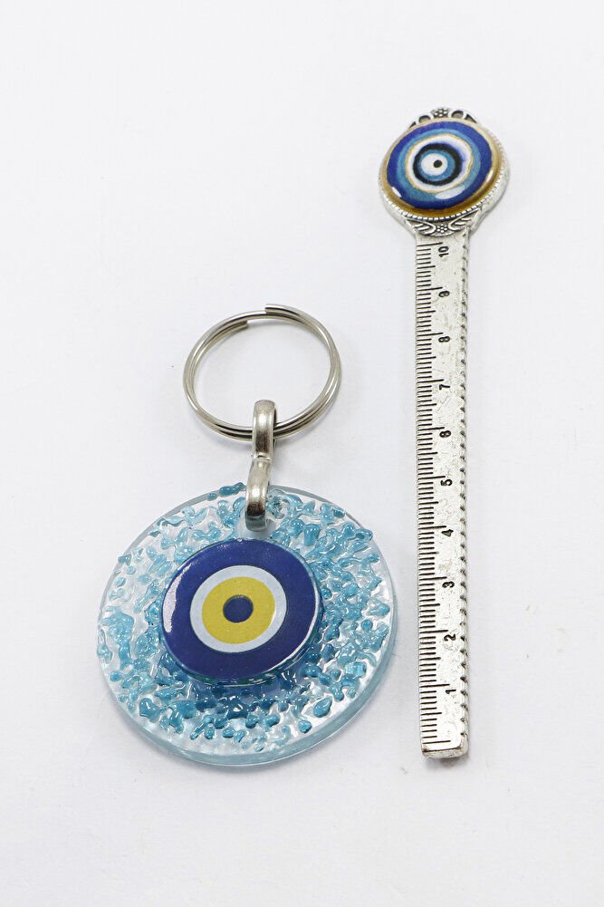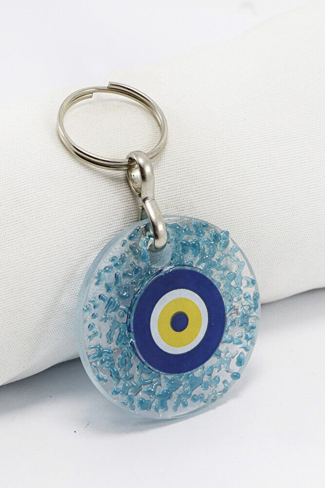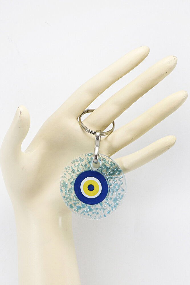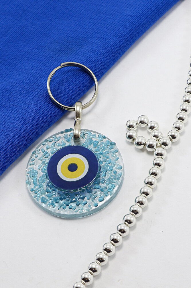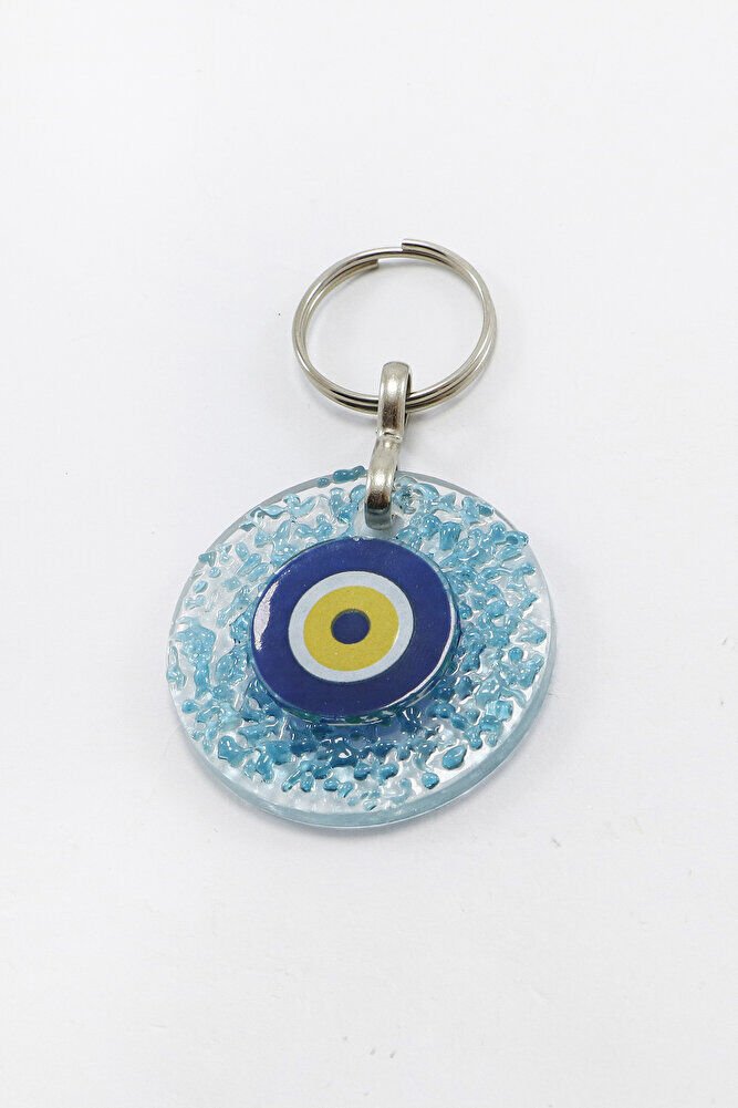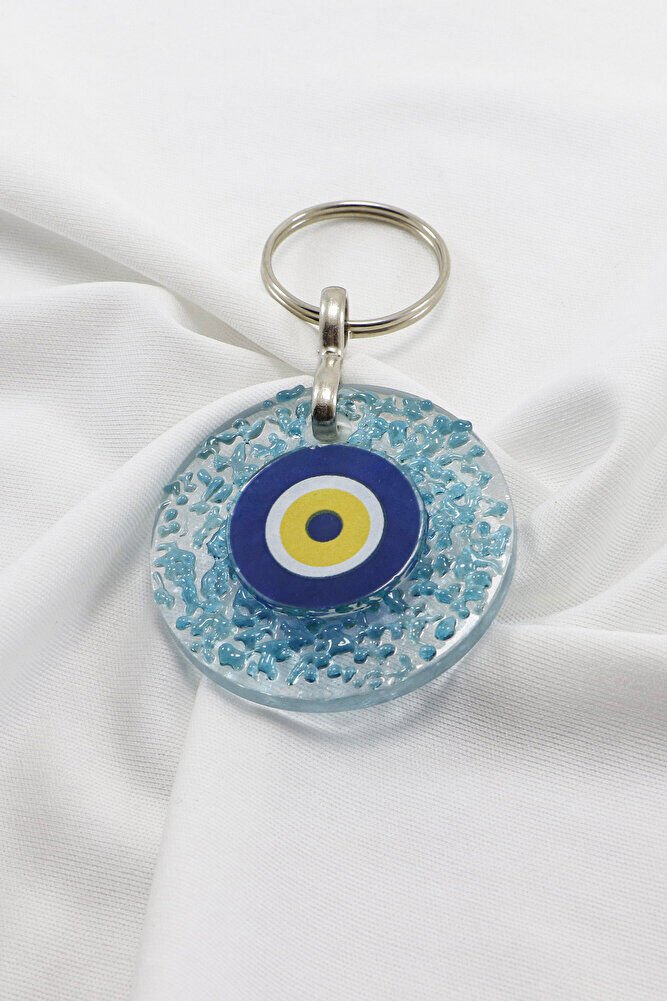 El Yapımı Kırıntılı Turkuaz Cam Nazar Boncuklu Anahtarlık, Hediyelik Çanta Süsü