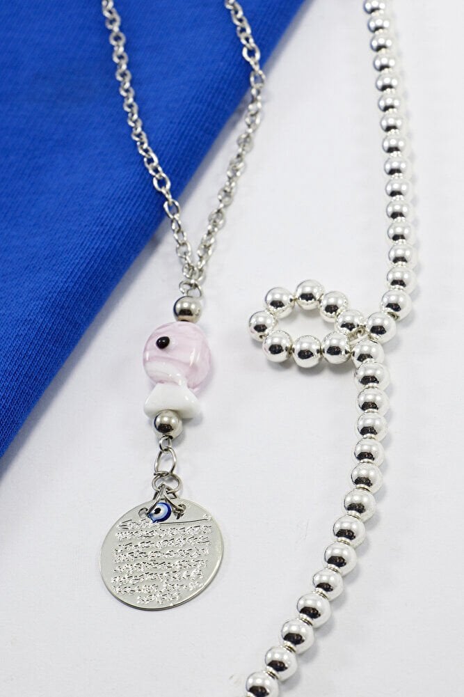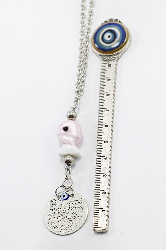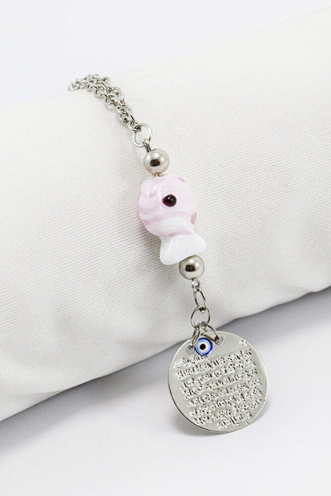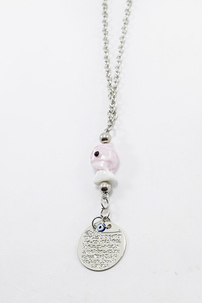 Pembe el yapımı cam balık aksesuarıyla süslenmiş bu şık araba dikiz ayna süsü, gümüş renkli metal tasarımı ve zarif görünümüyle dikkat çeker.; Metal plaka tek taraflıdır ve yalnızca bir yüzünde Ayetel Kürsi duası yer almaktadır.; Ayetel Kürsi duası, koruyucu ve huzur verici anlamlar taşıdığı için sıklıkla araçlarda tercih edilmektedir.; El yapımı cam balık detayı ise nazardan korunma ve uğur getirme inancıyla bütünleşerek ürüne manevi bir anlam kazandırır.; Sevdiklerinize hem şık hem anlamlı bir hediye arıyorsanız ideal bir tercih olacaktır.; TÜM ÜRÜN FOTOĞRAFLARI BİUTİ FİRMASINA AİTTİR VE ÖZGÜN ÇALIŞMALARDIR.; İZİNSİZ KULLANIM, KOPYALAMA VEYA DAĞITIM KESİNLİKLE YASAKTIR.; GEREKLİ DURUMLARDA YASAL İŞLEM BAŞLATILACAKTIR.