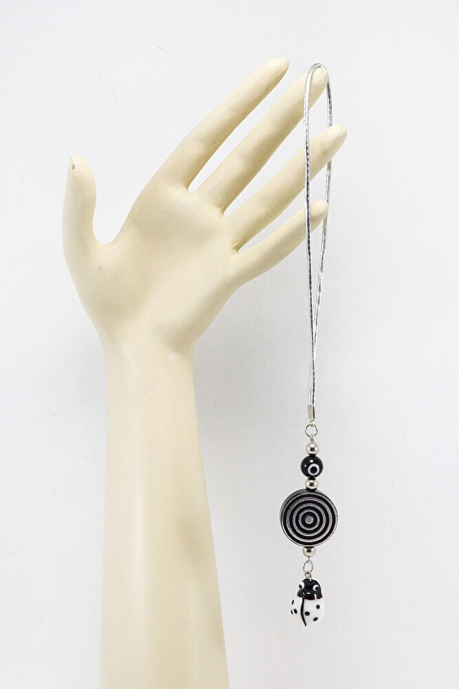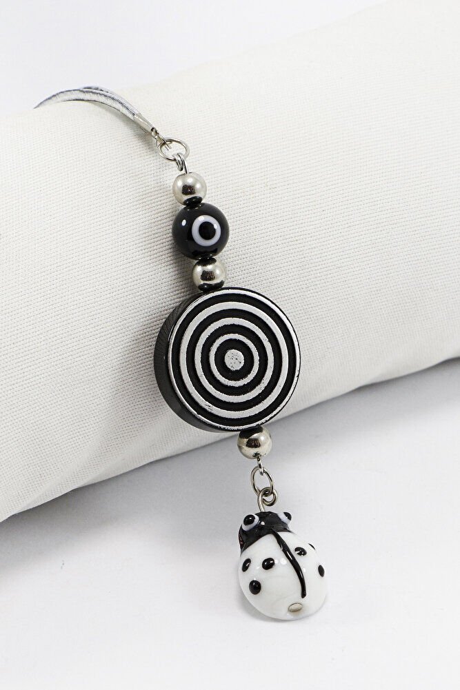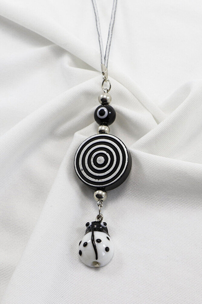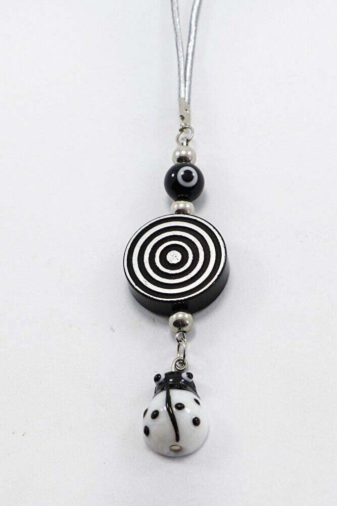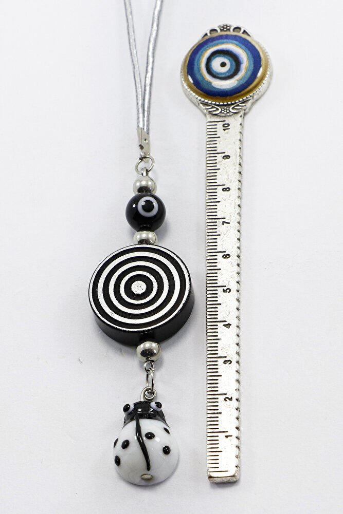 El Yapımı Siyah Nazarlı Girdap Figürlü Cam Uğur Böcekli Araba Dikiz Ayna Süsü, Yeni Araba Hediyesi