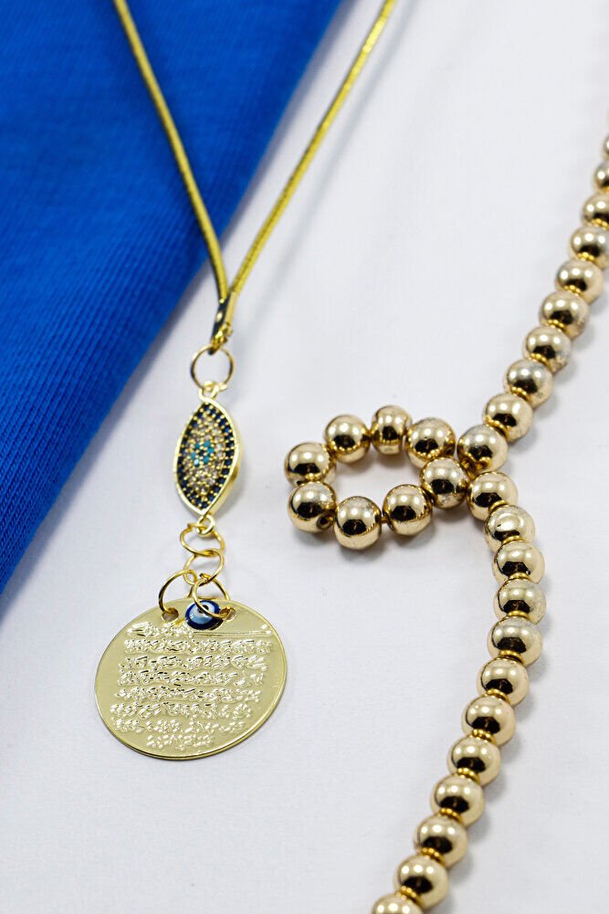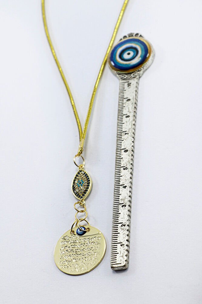 Ürün el yapımıdır.; Gold renkli ip esnektir.; El yapımı olduğu için ufak farklılık ve düzensizlikler olasıdır.; Türk kültüründe geleneksel olarak"nazar boncuğu" olarak bilinen bu güçlü sembolün kötülükleri savuşturduğuna ve iyi şans getirdiğine inanılır.; ; Her cam boncuk yetenekli zanaatkarlar tarafından titizlikle işlenir ve bu her parçayı benzersiz kılar.; ; Nazar boncuğunu, müşterilerimize duvar süsü, anahtarlık, araba aksesuarı, kapı süsü, magnet gibi farklı formatlarda sunuyoruz.; Pozitif enerji getirmek ve nazardan korumak için evinize, arabanıza veya ofisinize asın.; ; Nazar tılsımının dünyadaki çeşitli kültürlerde farklı isimleri vardır.; ; Arapça'da "aynal-hasud" veya "haset gözü", Yunanca'da "mati" olarak bilinir.; ; Adı ne olursa olsun, nazar boncuğunun gücüne olan inanç evrenseldir.;