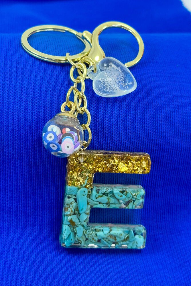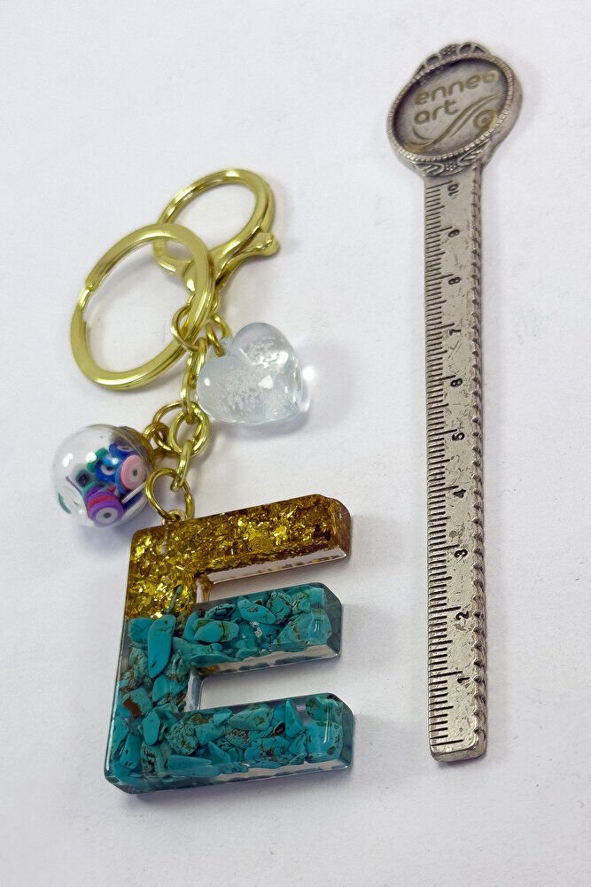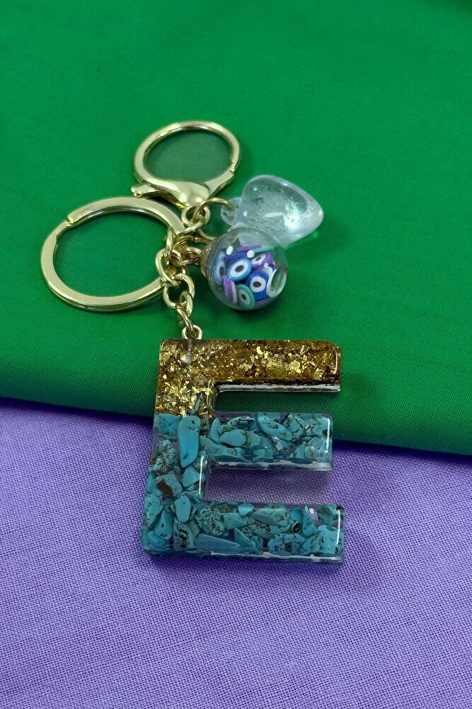 Epoxy Turquoise Stone Letter E Keychain, Gift Bag Ornament