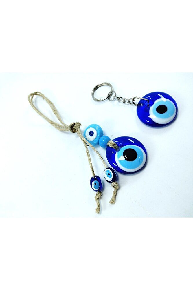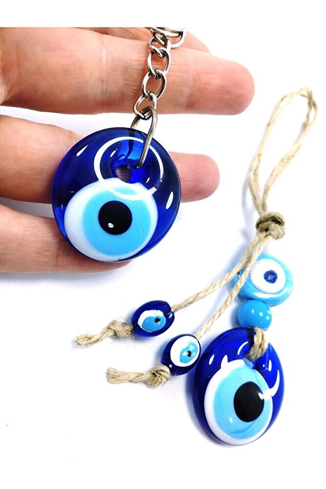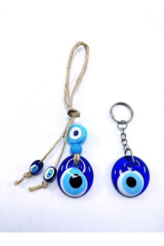 Evil Eye Bead Keychain + Car Rearview Mirror Ornament Handmade Glass Gift Set
