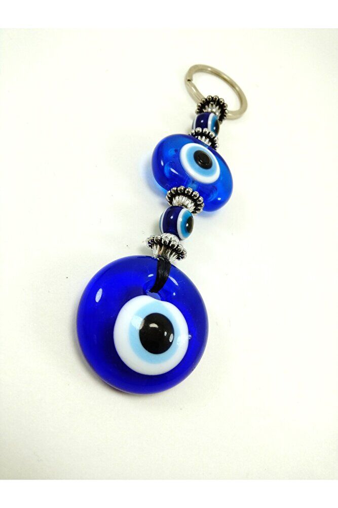 Nazar Boncuğu Anahtarlık El Yapımı Cam Hediyelik Aksesuar, Turkuaz Plastik Boncuklu
