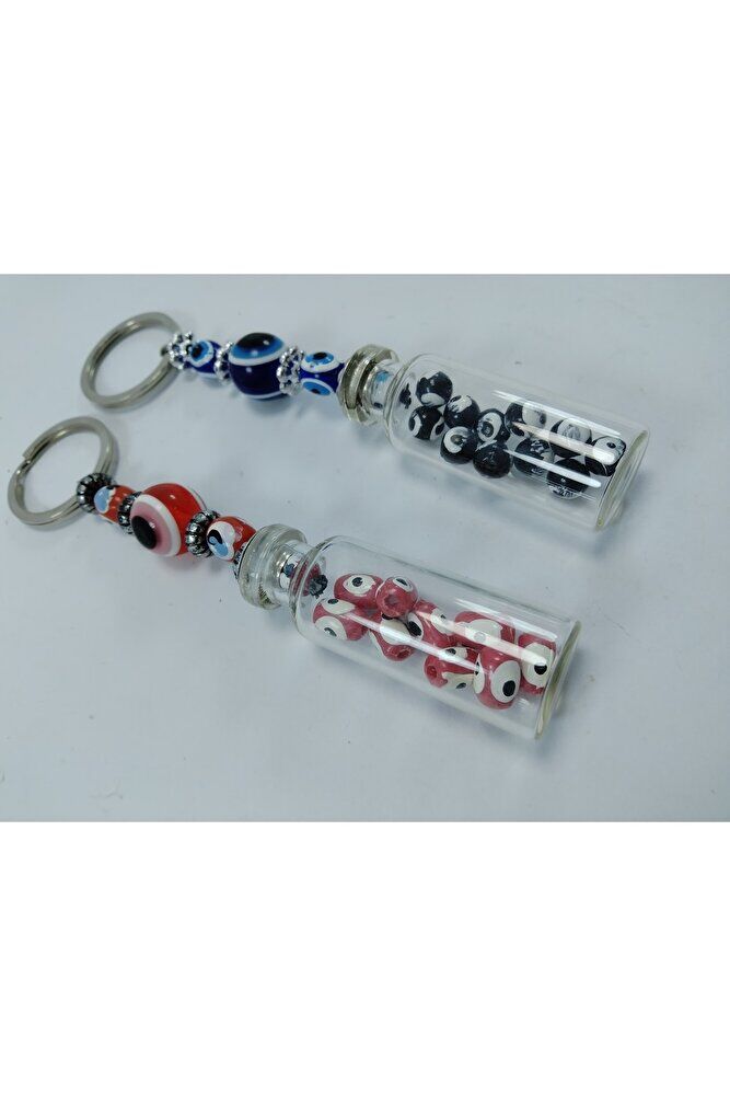 Nazar Boncuğu Anahtarlık Seti El Yapımı Şişe Kırmızı/siyah Hediyelik Aksesuar