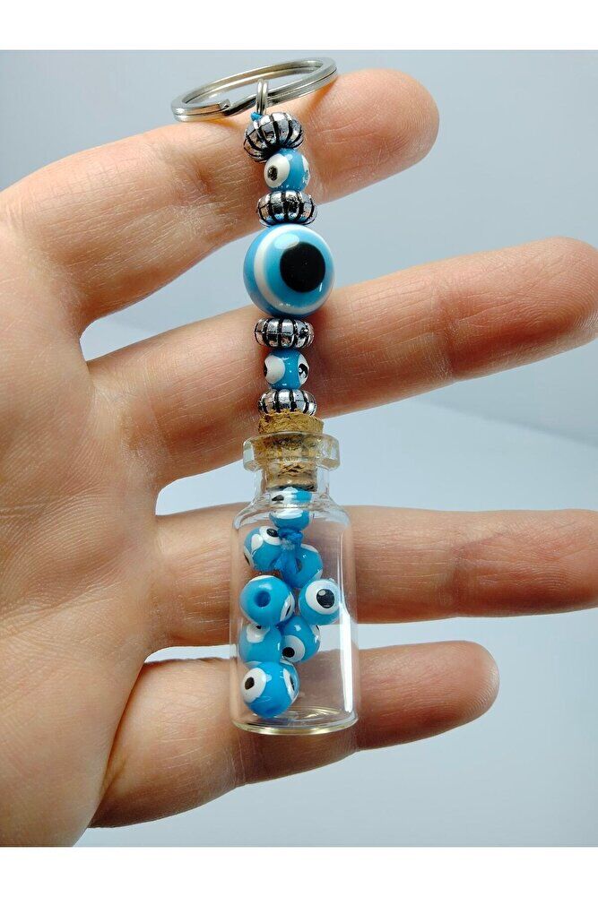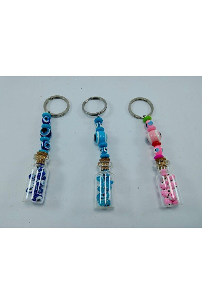 Evil Eye Bead Keychain Set Triple Handmade Bottle Blue/Turquoise/Pink Gift Accessory