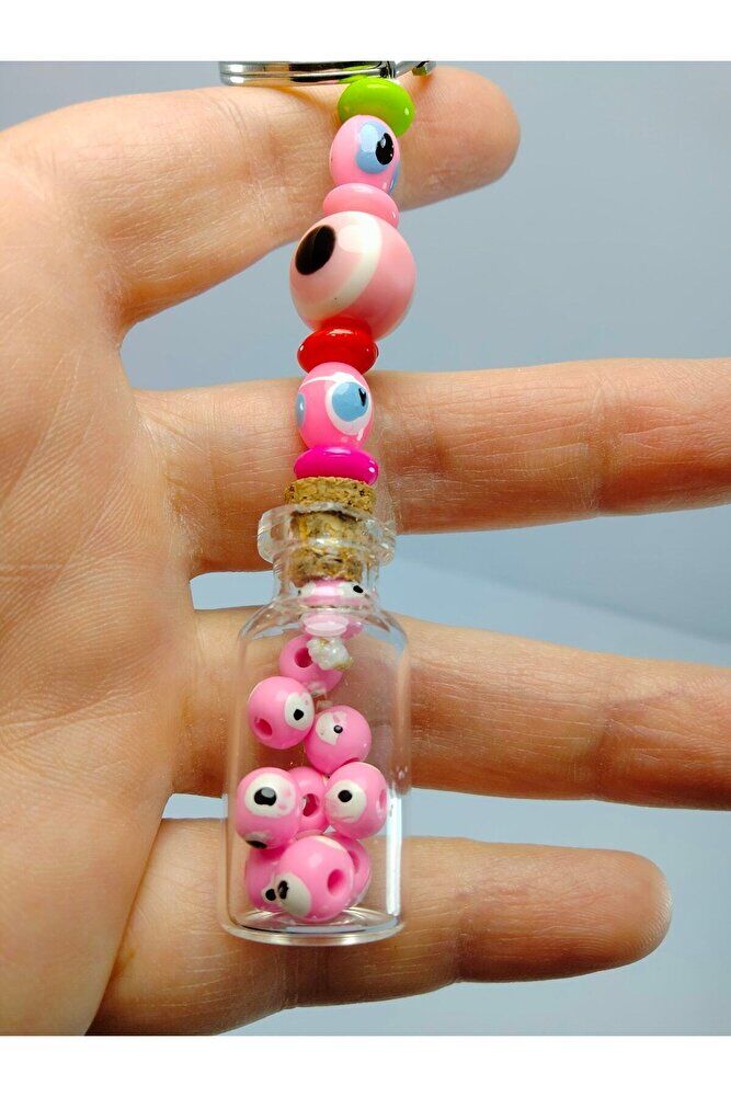 Glass bottles are 4; 1.5 cm, all keychains are 10 cm in size; Since they are handmade, slight differences and irregularities are possible;