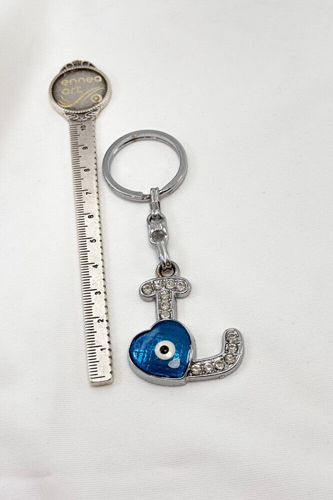 Nazar Boncuğu L Harfi Anahtarlık / Araba Dikiz Ayna Süsü Metal Hediyelik Aksesuar