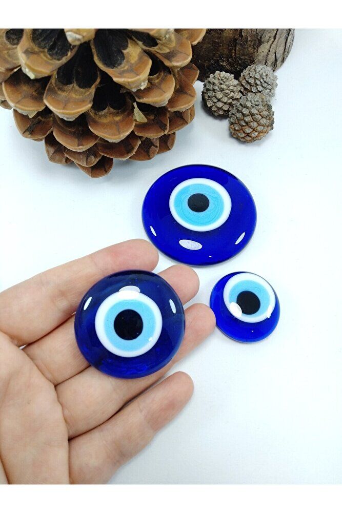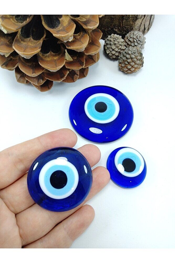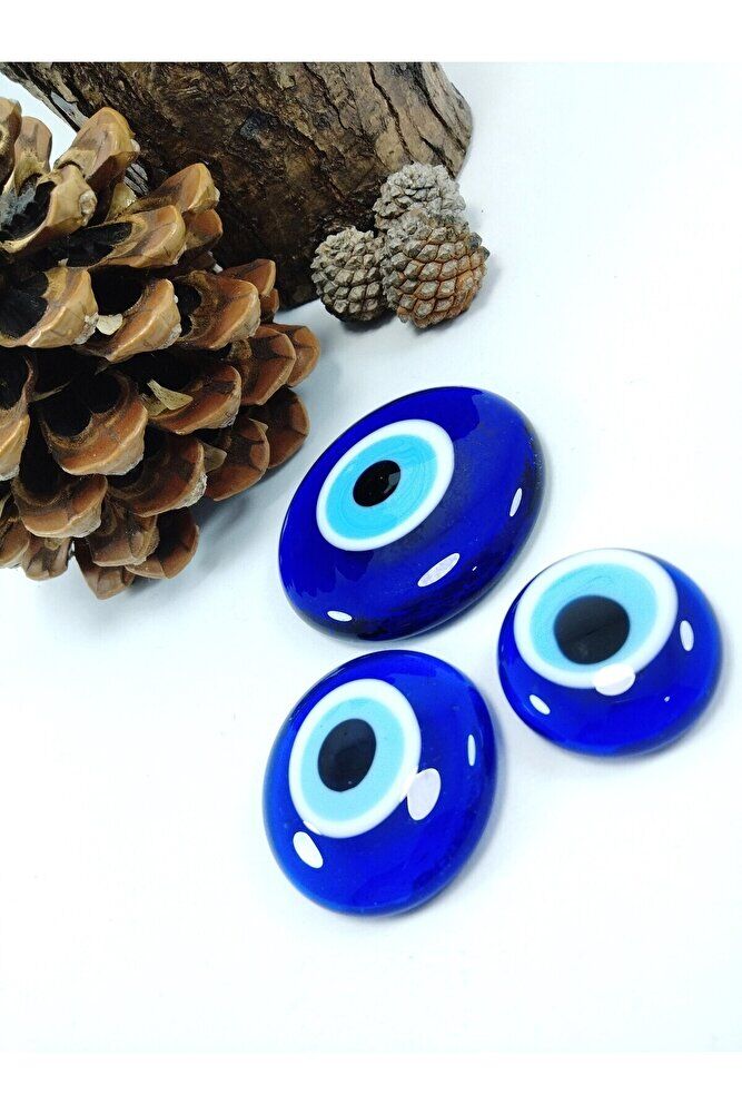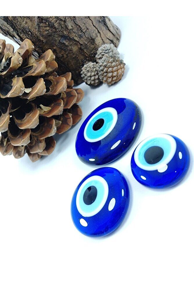The products are handmade. ; Because they are handmade, slight differences and irregularities are possible. The set contains three solid beads. ; The beads are 5.5 x 4 x 3 cm in size. ; The evil eye bead is a type of protective object used in Turkish culture and some other Middle Eastern countries. ; It is a small bead usually designed in blue and white and has a black dot or eye shape inside. ; The purpose of the evil eye bead is used to ward off bad luck, envy, or the evil eye (gaze) on a person and to protect them. ; Therefore, it can be used in homes, cars, workplaces, jewelry, and even babies' clothes.