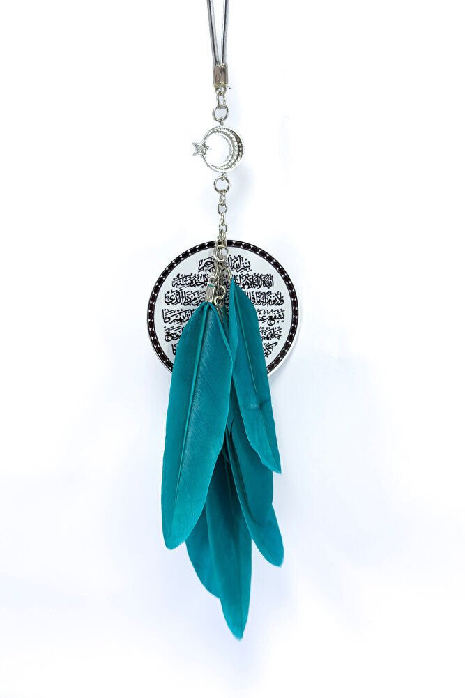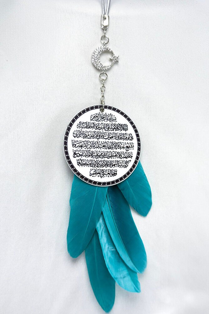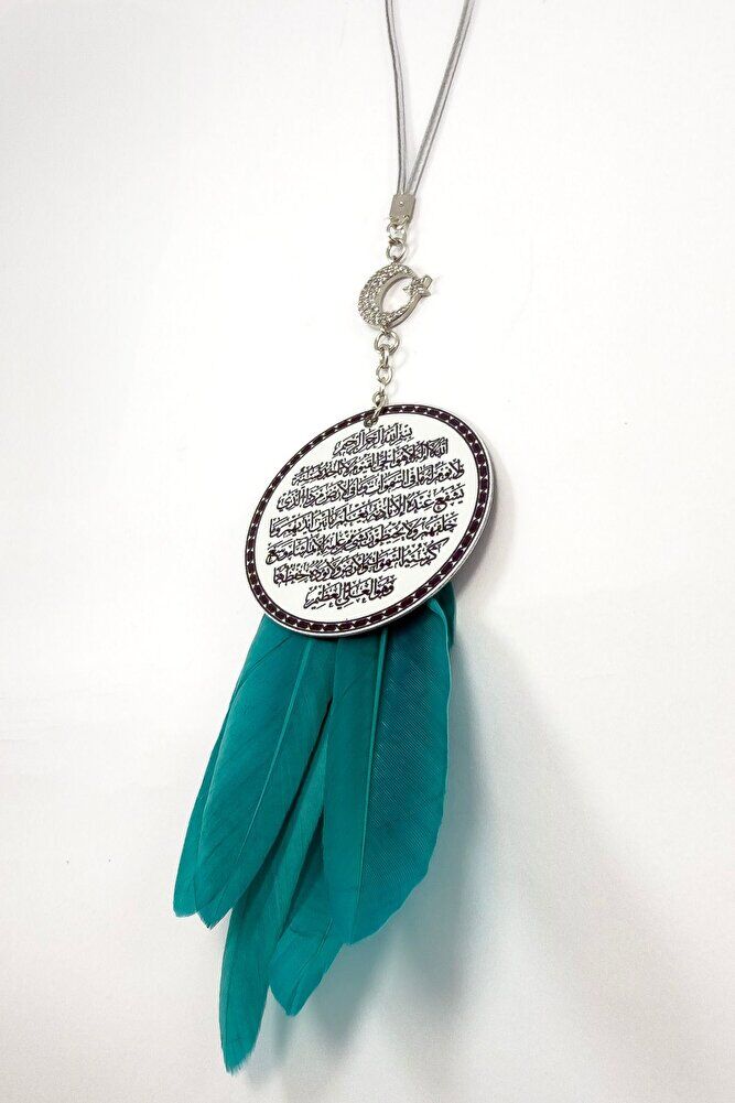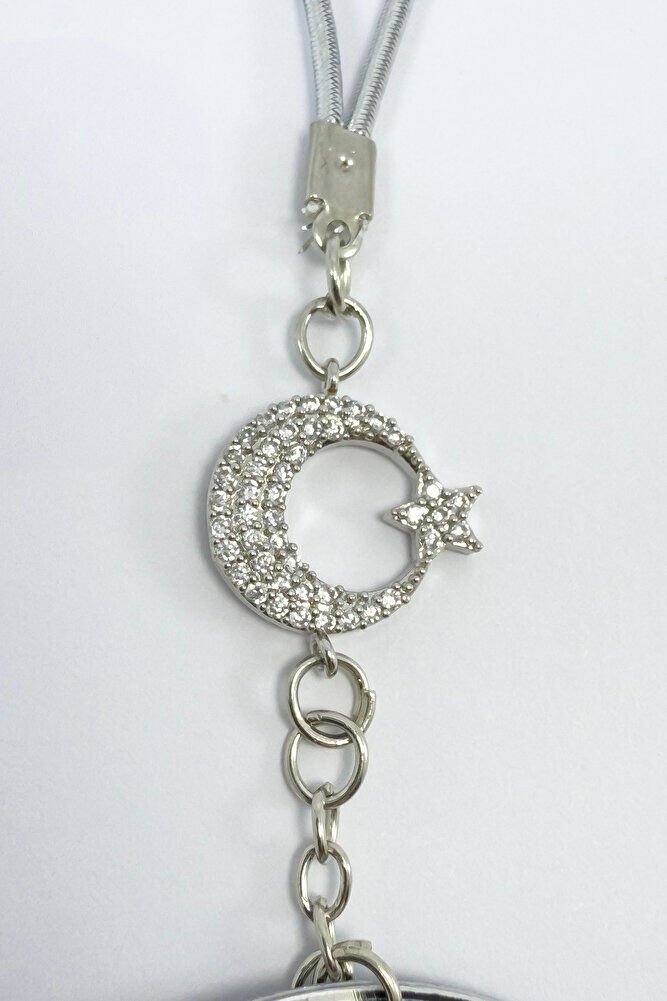The product is handmade.; The rope is elastic.; It can be easily attached to any model.; The crescent star with shiny stones is single-sided.; The plate is metal.; Ayetel Kürsi is written on the metal plate with UV printing on both sides.;