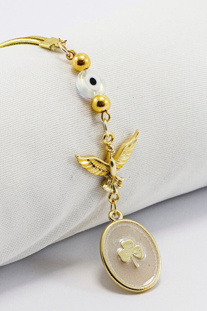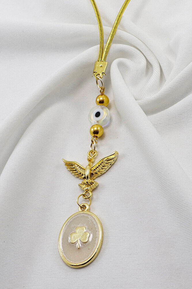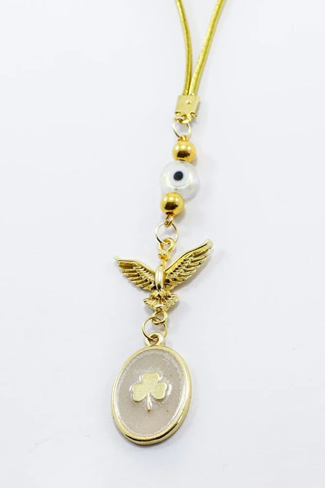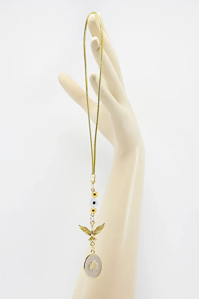 Yassı Boncuklu Anka Kuşu Sedefli Yonca Figürlü Araba Dikiz Ayna Süsü, Yeni Araba Hediyesi