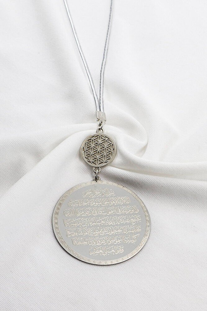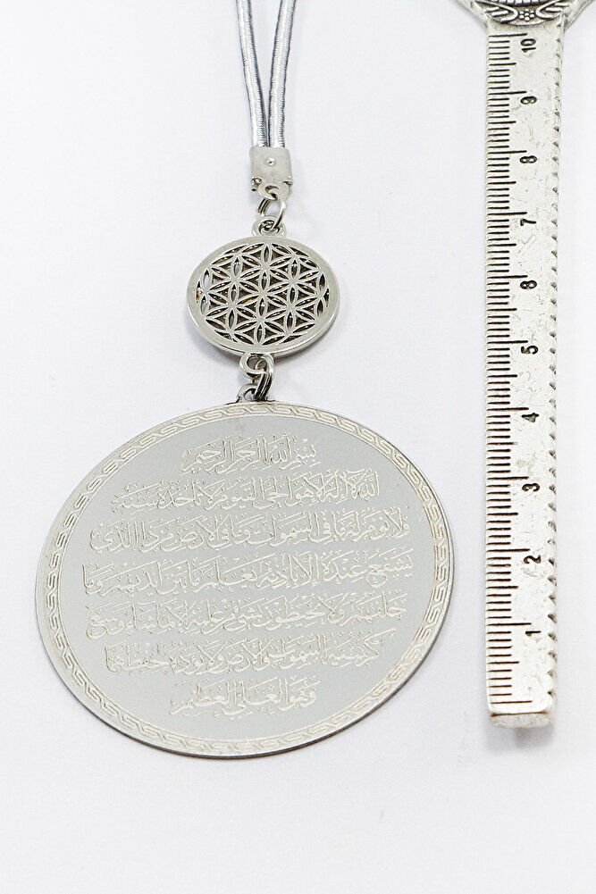 Flower of Life Stainless Steel Ayetel Kursi Felak Nas Ihlas Car Rearview Mirror Ornament (4.5cm Plate)