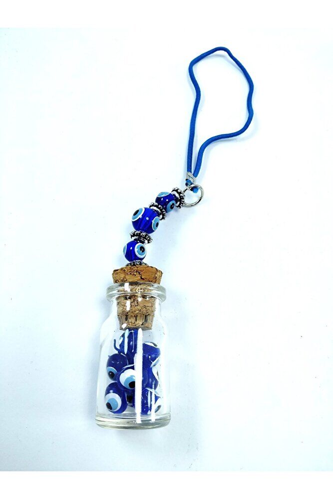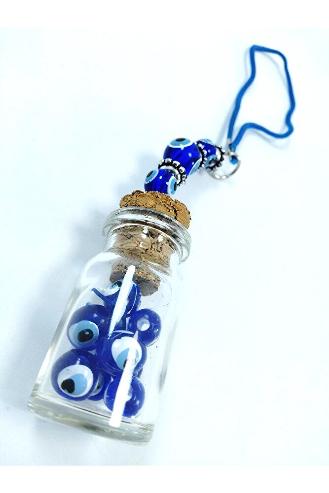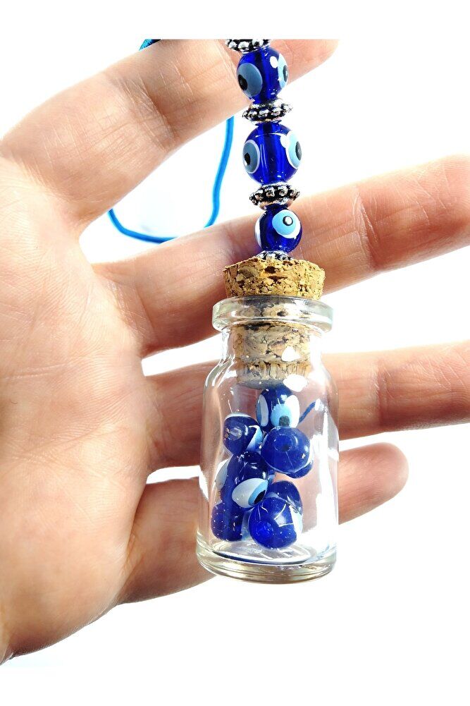 The product is handmade; The glass bottle is 4.5; 2 cm; Because they are handmade, slight differences and irregularities are possible; In Turkish culture, traditionally known as the "evil eye bead", this powerful symbol is believed to ward off evil and bring good luck; Each glass bead is meticulously crafted by skilled artisans, making each piece unique; We offer the evil eye bead to our customers in different formats such as wall hangings, keychains, car accessories, door ornaments, magnets; Hang it in your home, car or office to bring positive energy and protection from the evil eye; The evil eye talisman has different names in various cultures around the world; It is known as "aynal" in Arabic; hasud or "eye of envy" and "mati" in Greek; Whatever the name, belief in the power of this protective evil eye bead is universal;