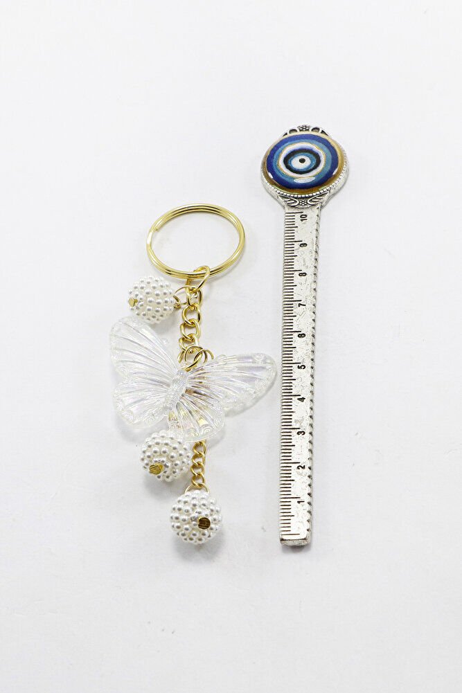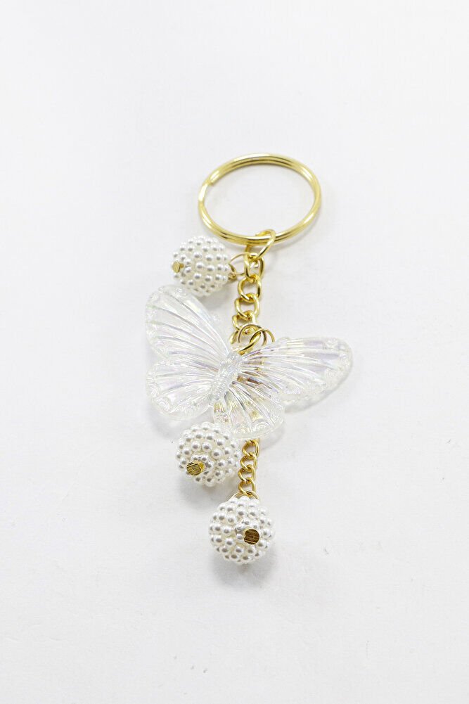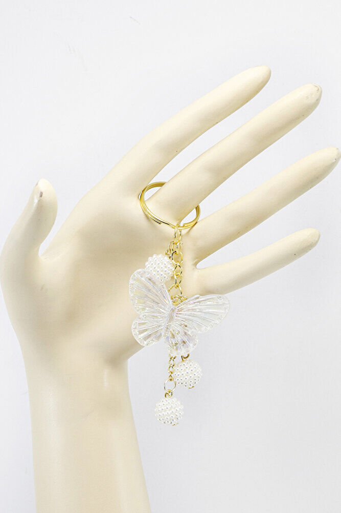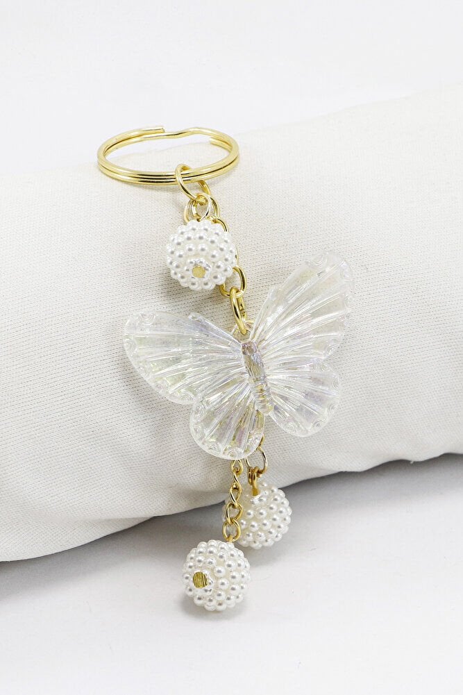 Gold Halkalı Salkım İncili Böğürtlen Şeffaf Kelebekli Anahtarlık, Hediyelik Şık Çanta Süsü