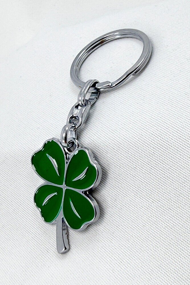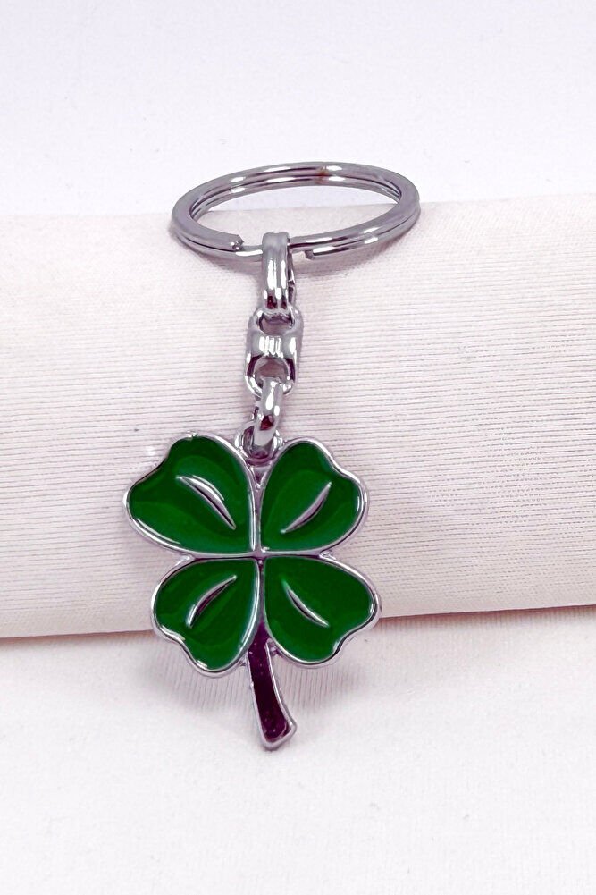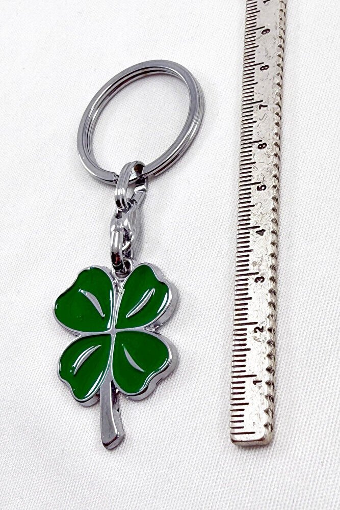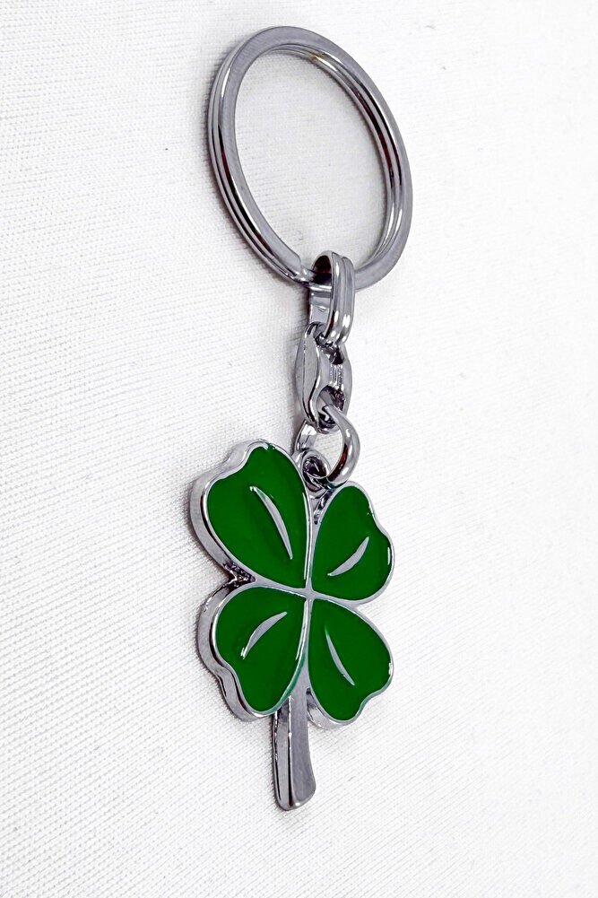 Yeşil Dört Yapraklı Şans Yoncası Metal Anahtarlık, Hediyelik Anahtarlık