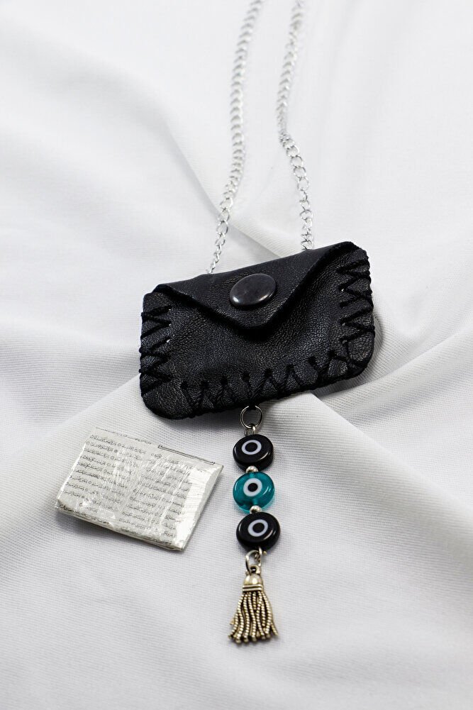 Nazar boncukları el yapımı camdır.; El yapımı olduğu için ufak farklılık ve düzensizlikler olasıdır.; Zincir ayarlanabilir olduğundan tüm dikiz aynaları ile uyumludur.; Cevşen, suni deri çıtçıtlı çanta içerisindedir.;