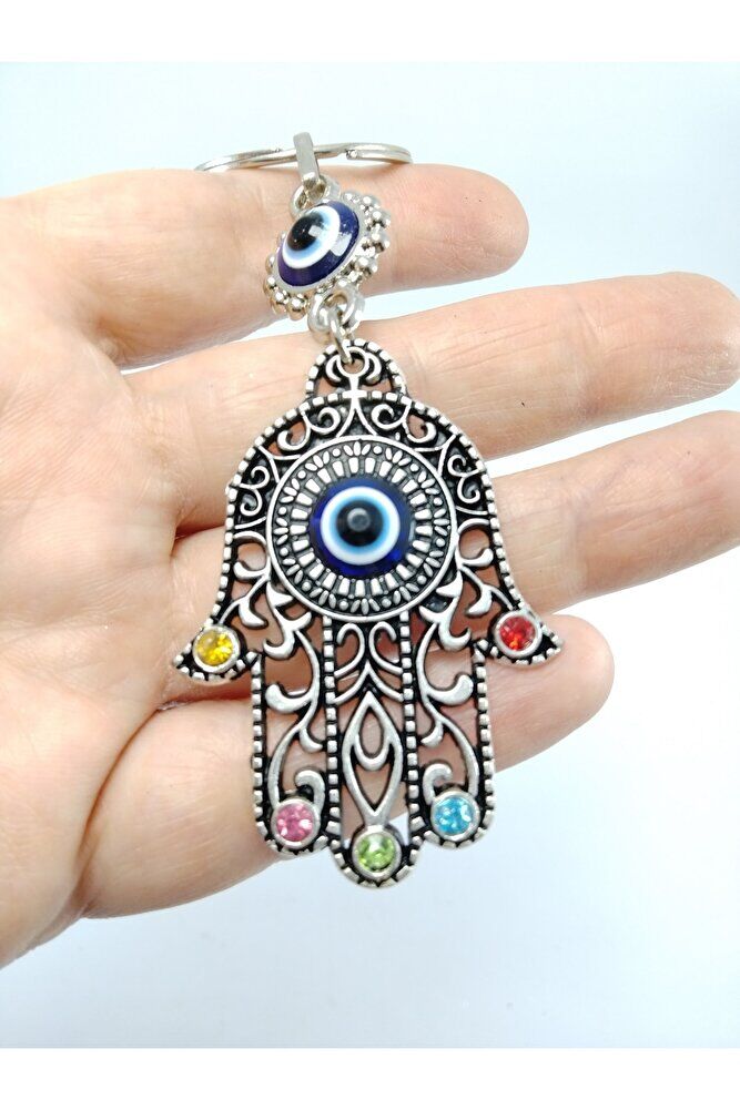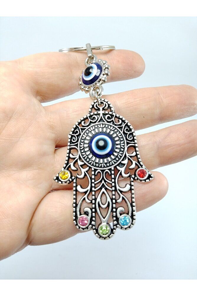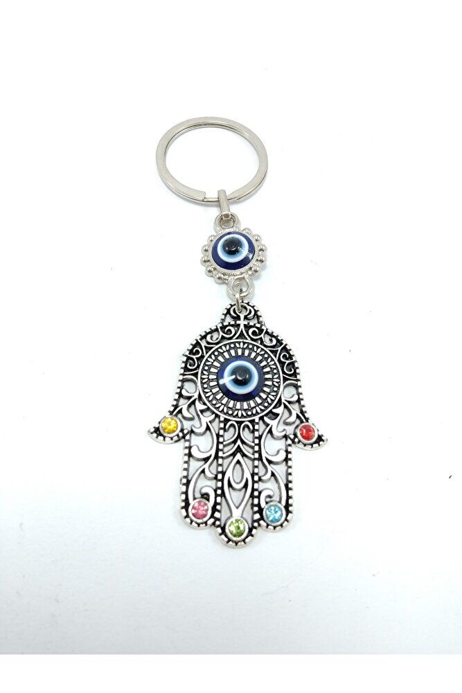 Hamsa Hand Evil Eye Bead Keychain Stone Metal Gift Accessory