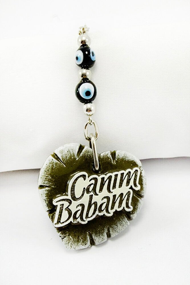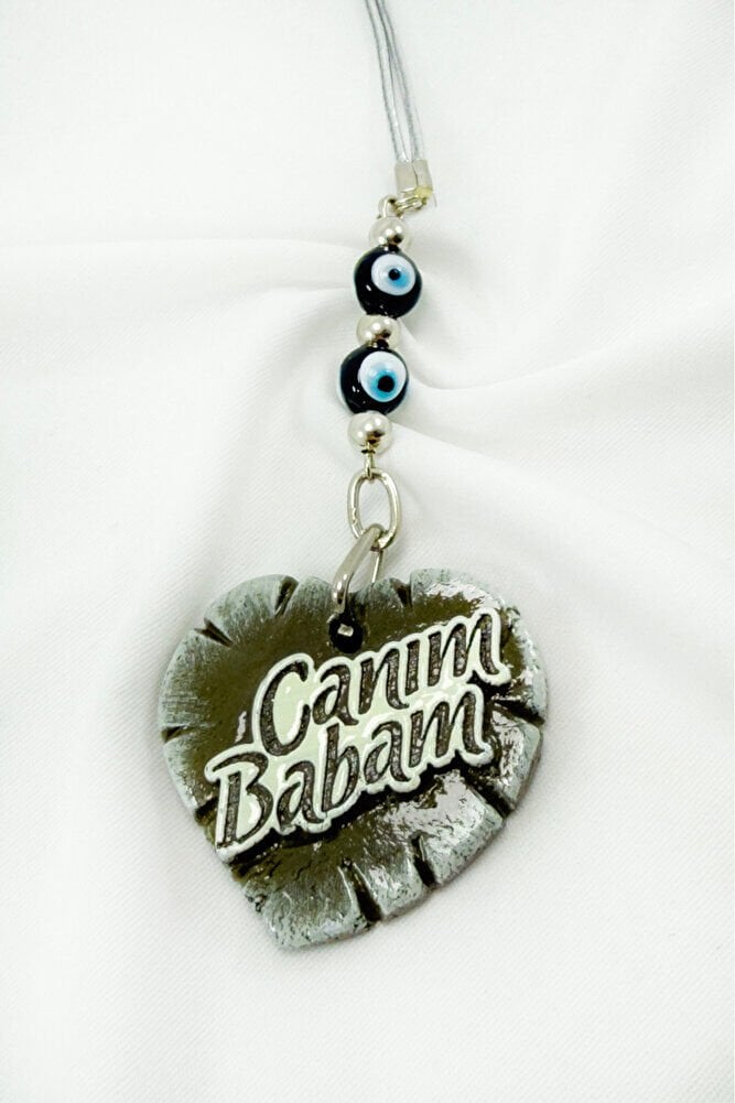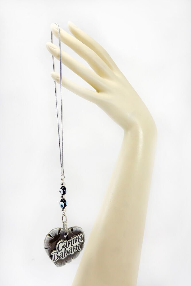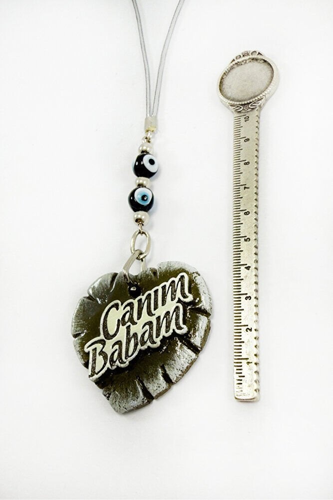 Handmade Black Glass Evil Eye Beaded Heart Car Rearview Mirror Ornament with "My Dear Father" Written