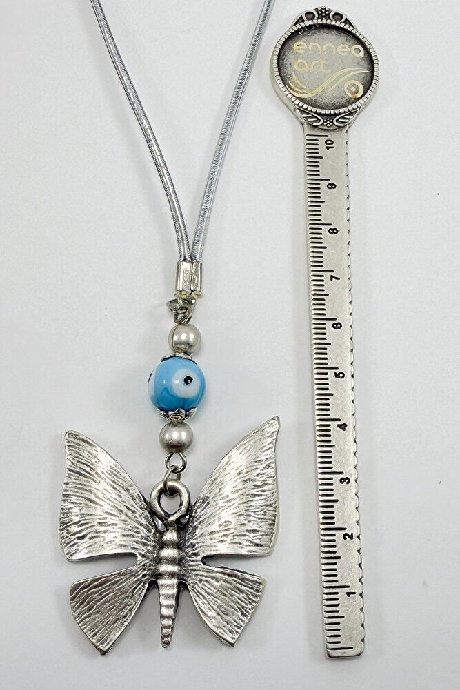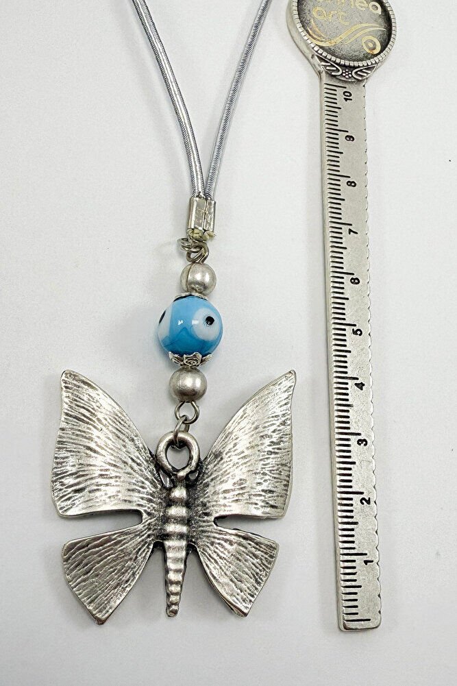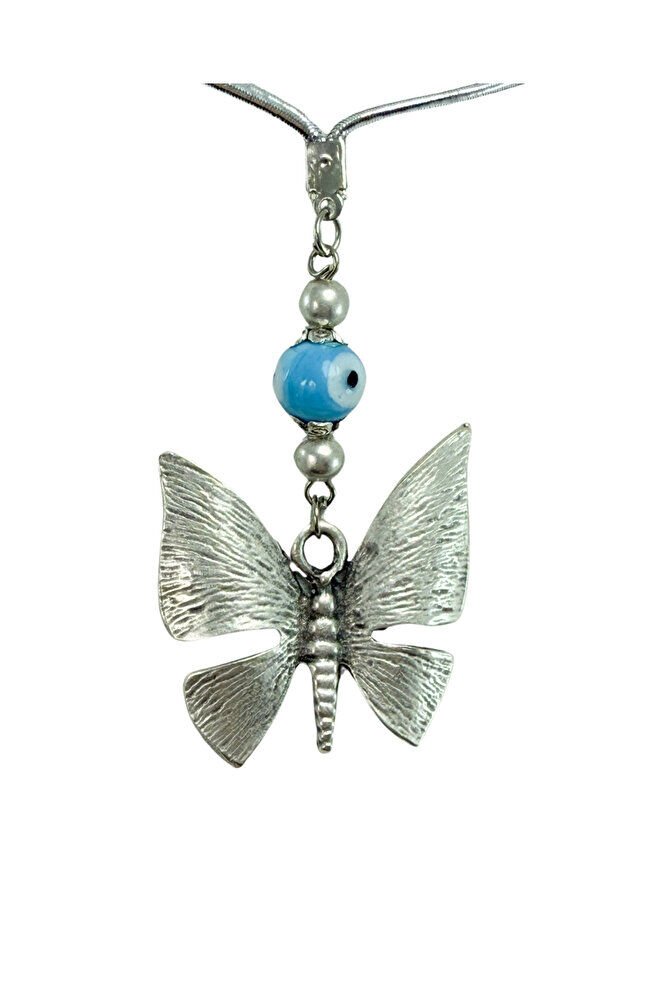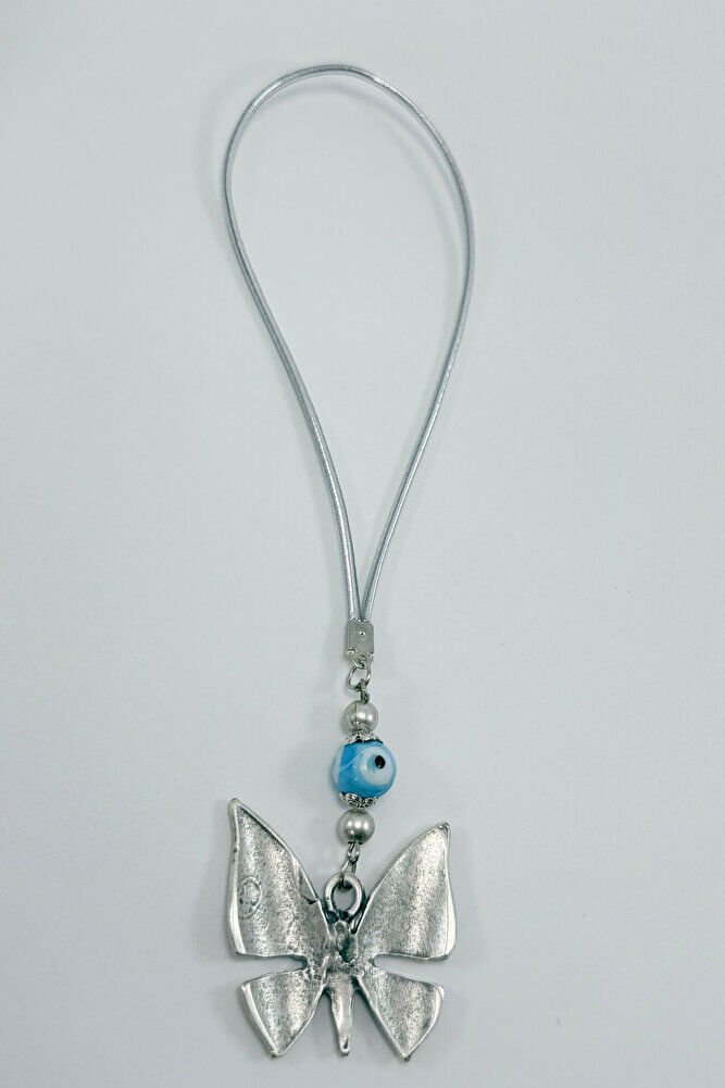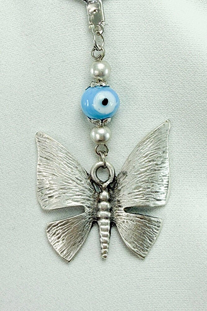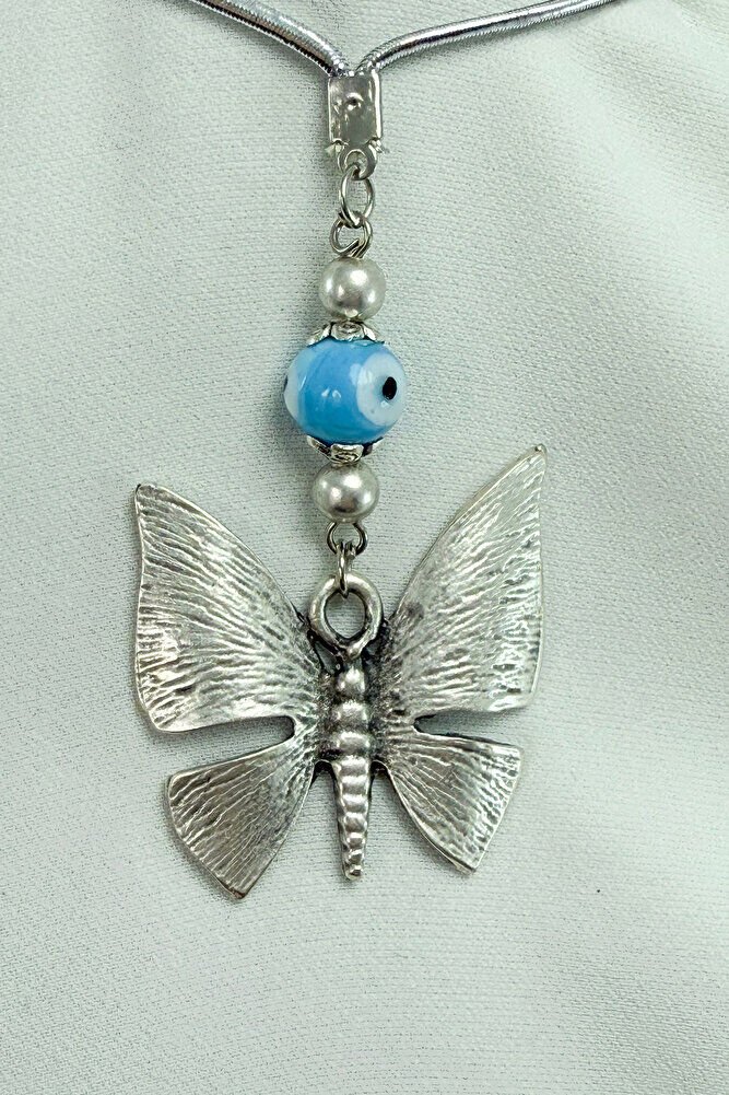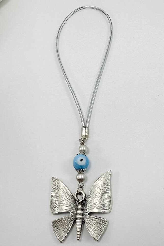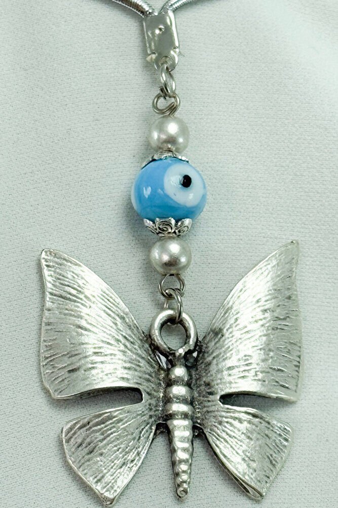 El Yapımı Mavi Cam Nazar Boncuklu Metal Kelebek Araba Dikiz Ayna Süsü ,Yeni Araba Hediyesi