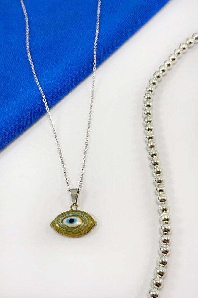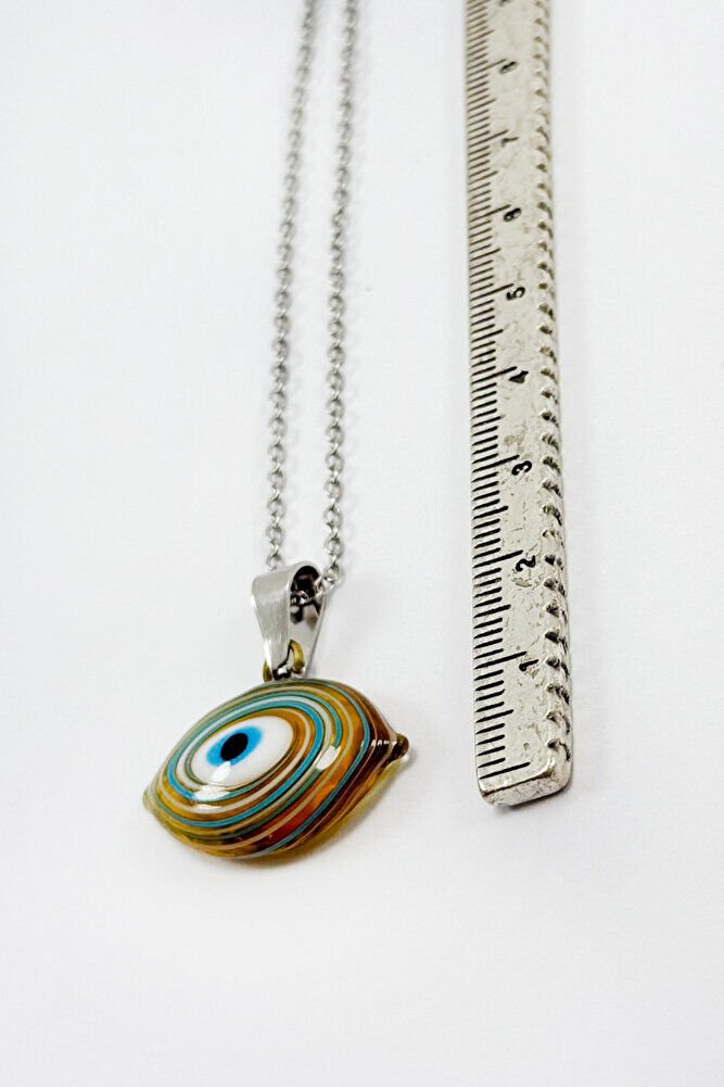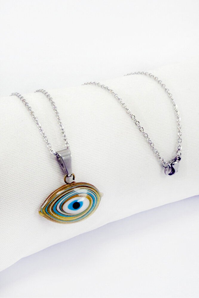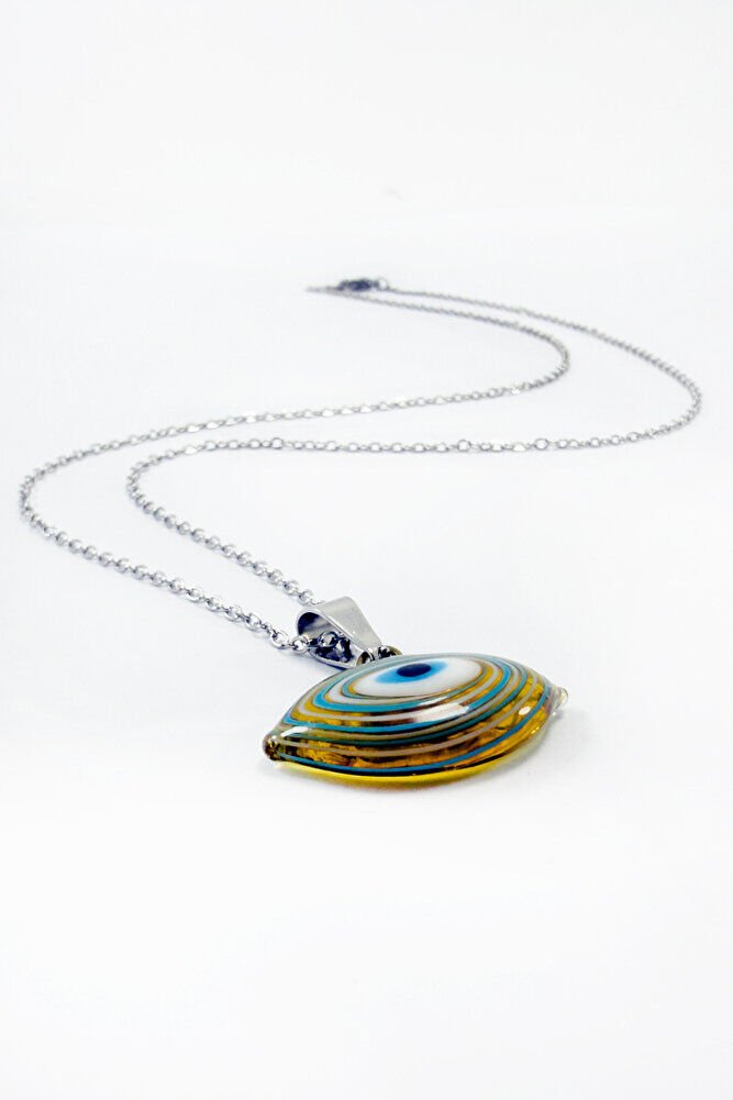 Handmade Ellipse Evil Eye Necklace with Stainless Steel Chain, Gift Necklace (60cm)
