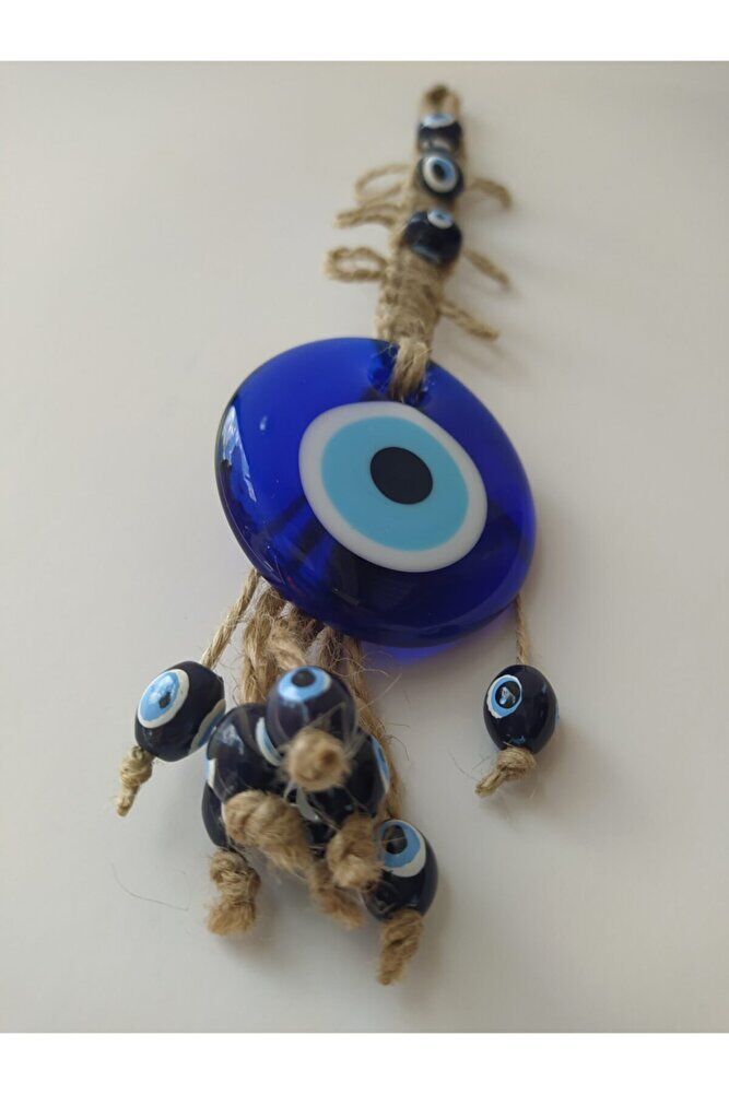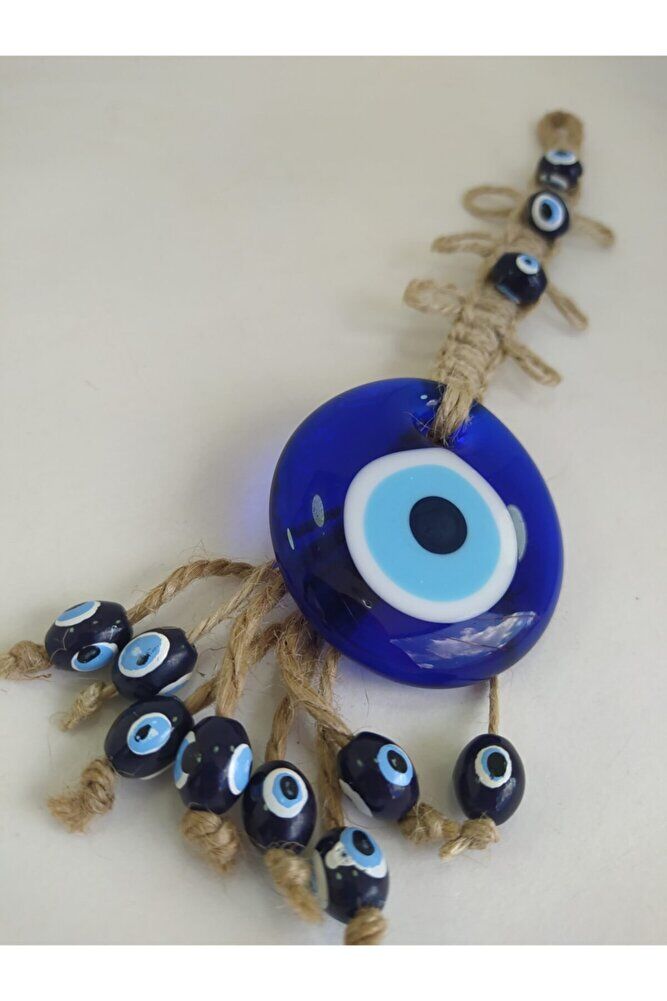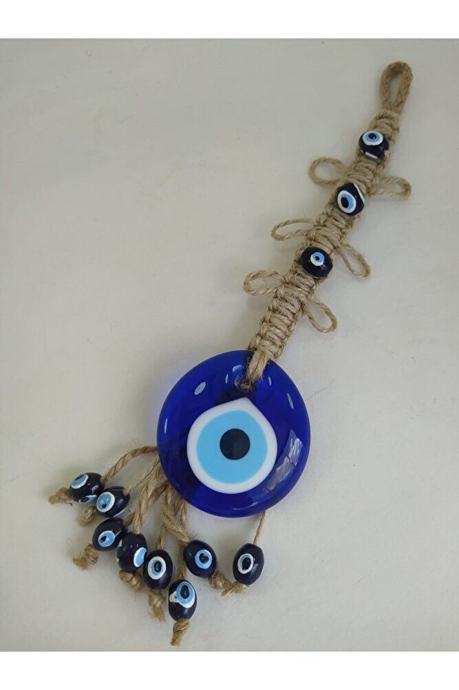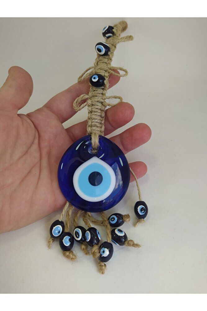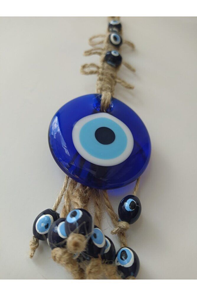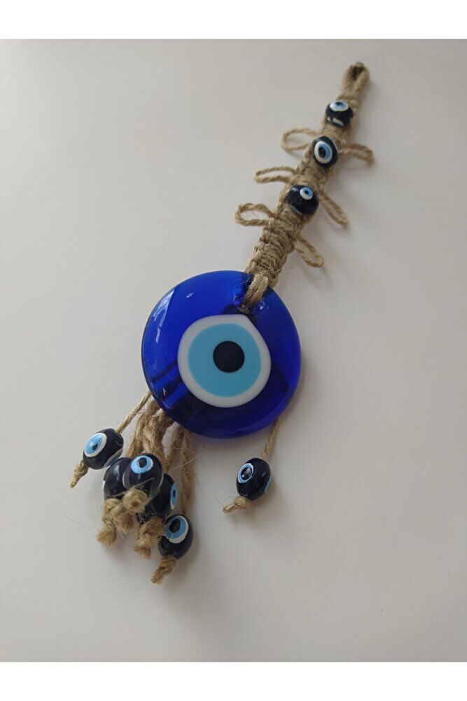 Handmade glass evil eye beads, each one unique and produced with special workmanship.; Prepared with macrame techniques, this wall decor enriches the atmosphere of your home or office.; Standing out with its 5 cm diameter size, this product stands out as an eye-catching detail.; Thanks to the glass material, it has high light transmittance, increasing the illumination in your room while also creating a decorative effect.; This design, which reflects the meaning of the evil eye bead, brings positive energy to your living spaces.;