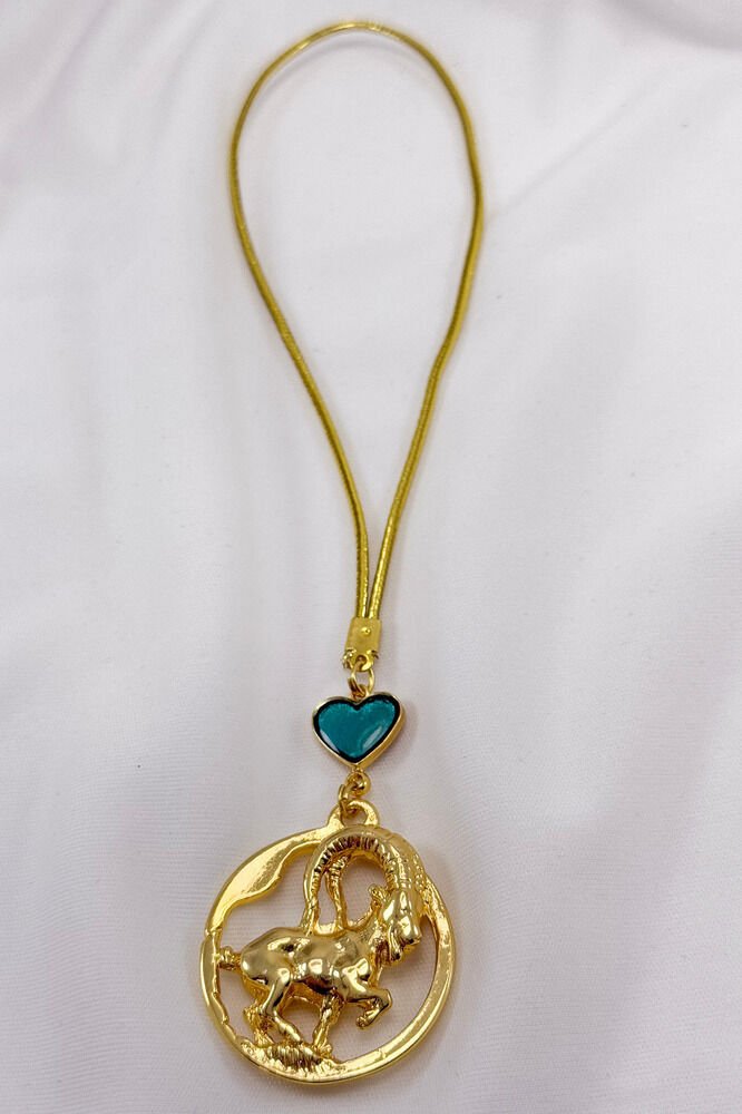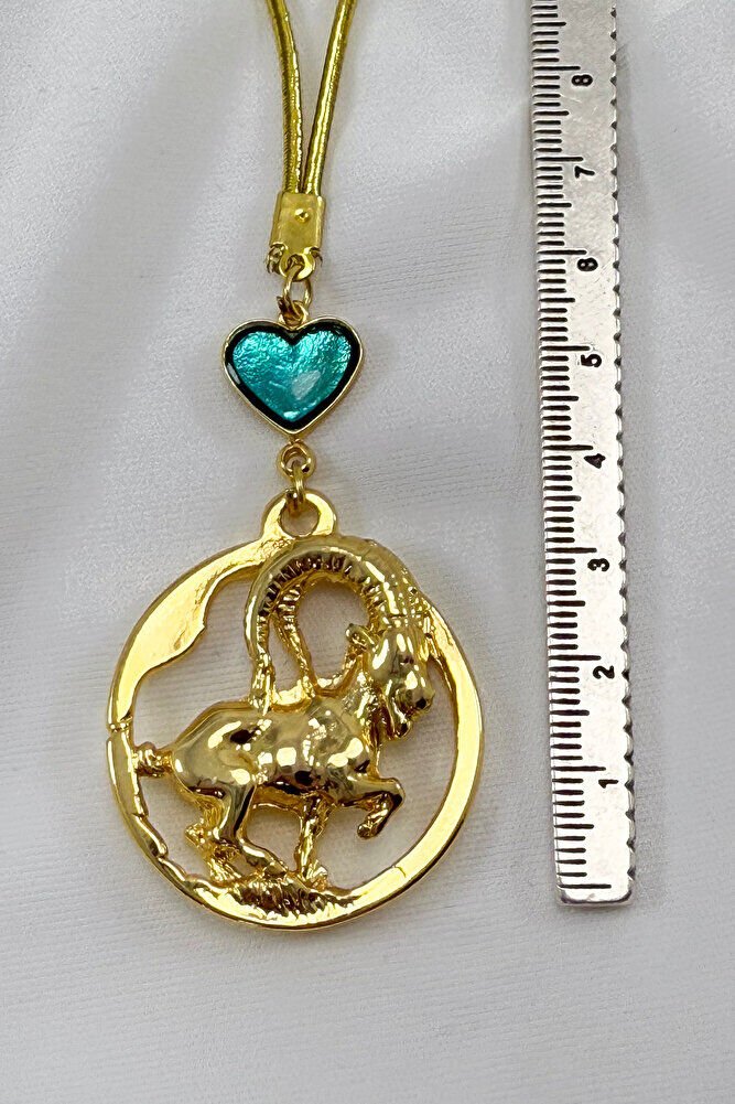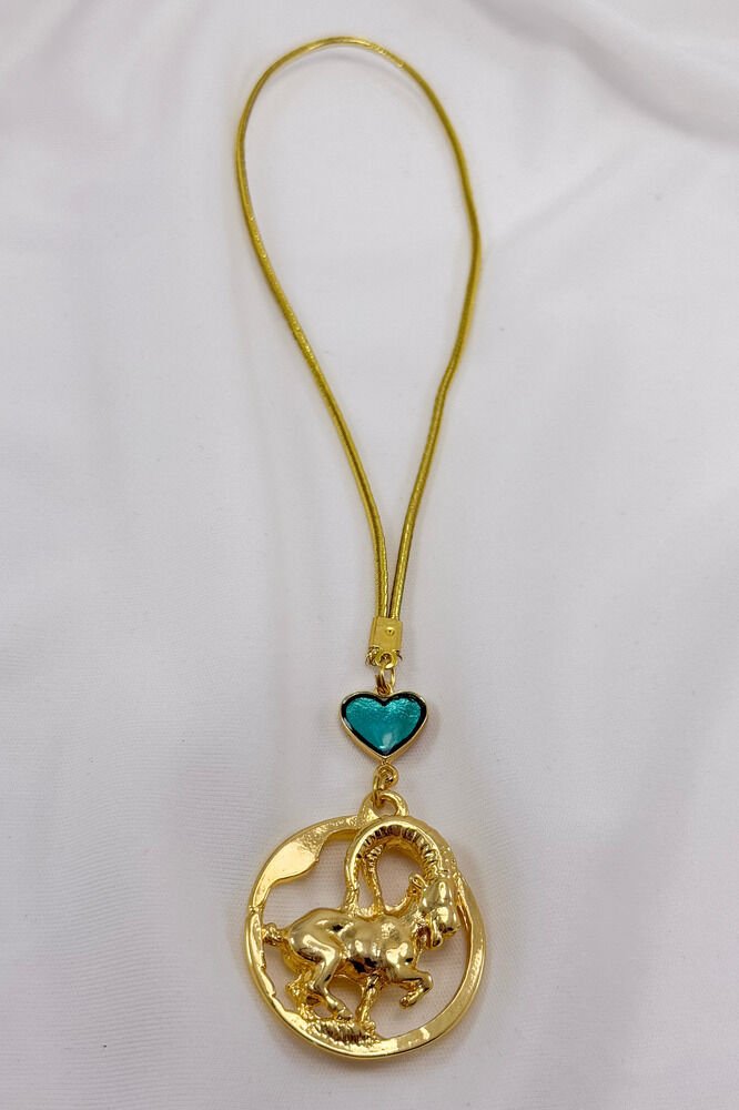 Handmade Glass Evil Eye Bead Gold Color Aries Car Rearview Mirror Ornament, Aries Car Gift